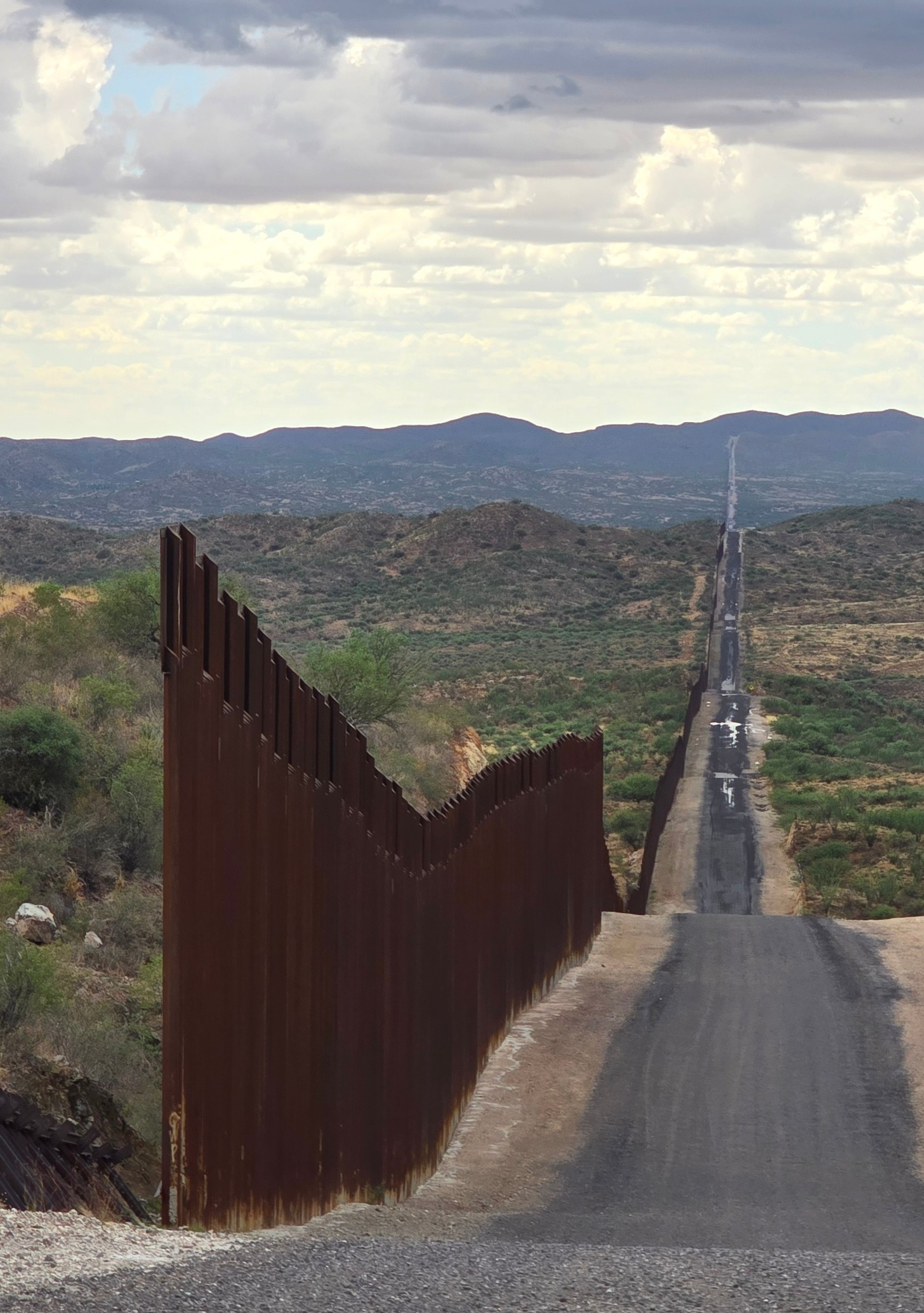 We had the opportunity this weekend to take a trip to the “End of the Wall” with Tucson Samaritan, Gail Kocourek. I went into this experience with Dora’s story fresh in my mind. We drove along the hilly terrain the border wall is built upon, taking it in. We saw a mountain that was scheduled to be blown up to make room for the wall, several border patrol agents, wildlife, and took in the beauty of the landscape with the summer monsoon rains looming on the horizon.
