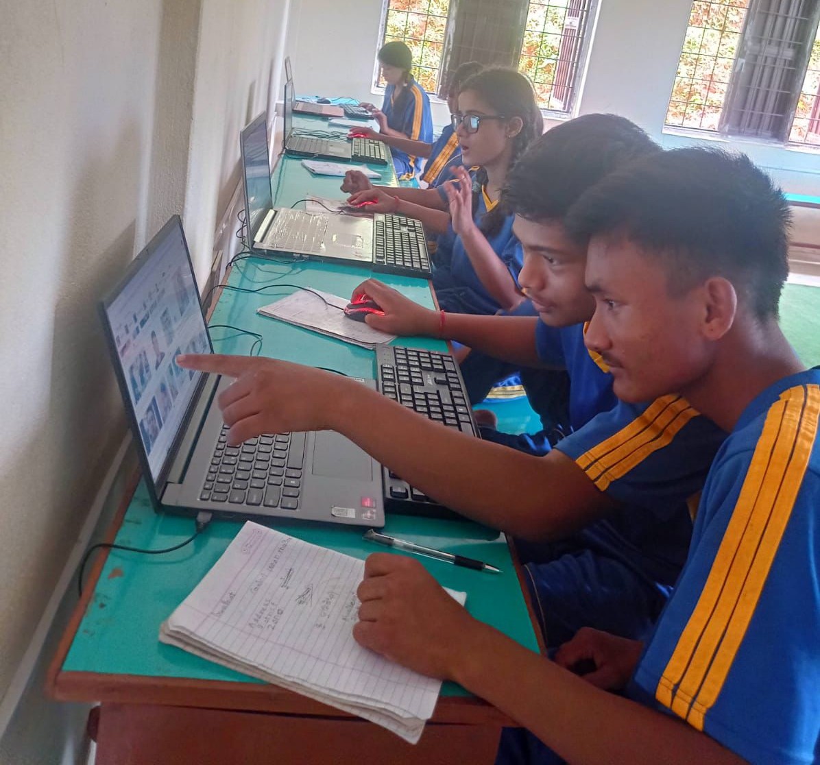 At EHN, students had already received basic training from their dedicated computer teacher, Yash Kumar Praja. He had taught them everything he knew: Microsoft Office, internet basics, and essential computer functions. Our role was to take things further.