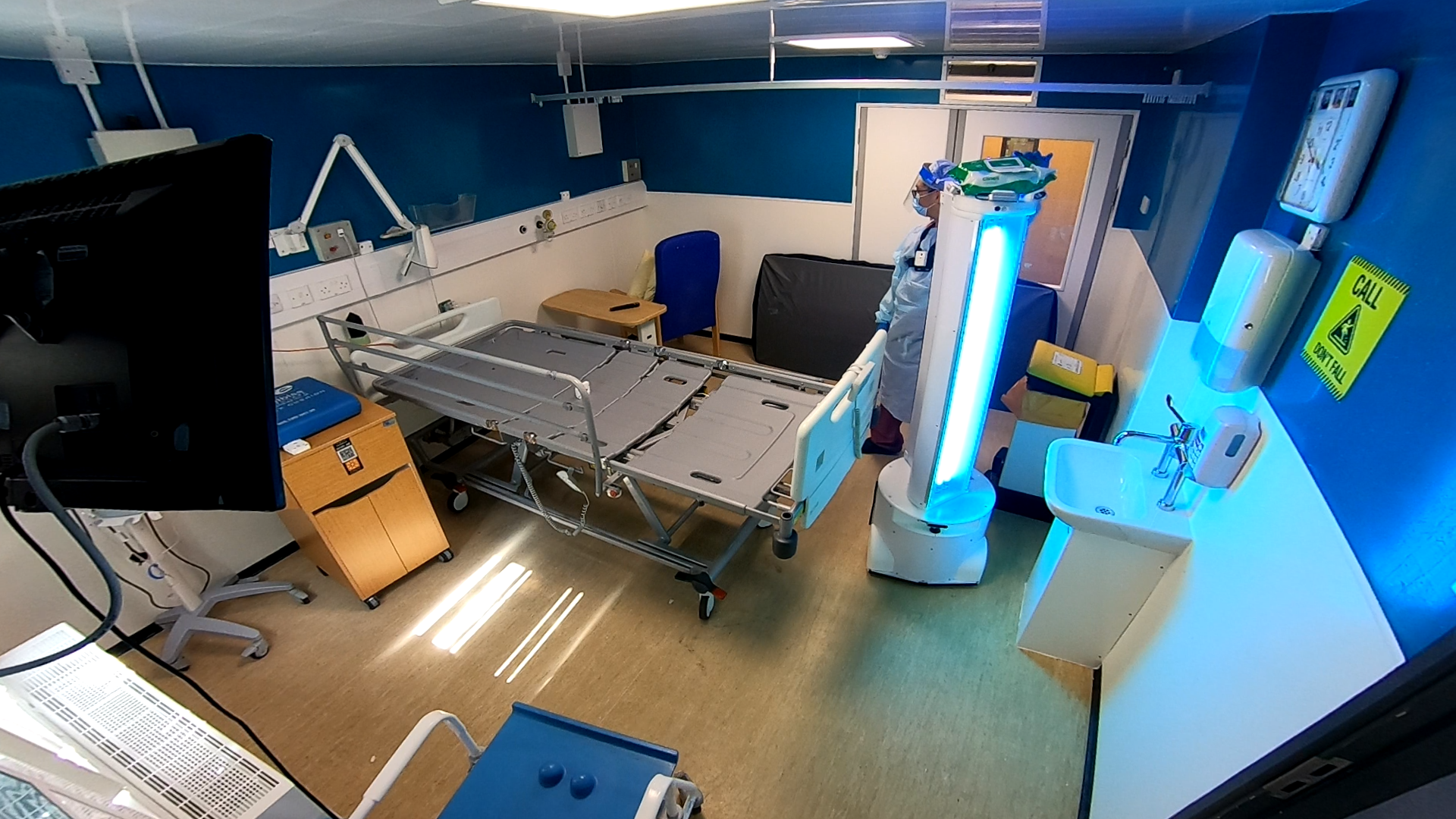 I showcased two robots to the Endoscopy and Isolation wards of the hospital. The robots were called VAir and VSurface and were created to respectively clean the air and surfaces in hospitals using UV lights. The first three weeks involved me showcasing VAir to the Endoscopy staff. This period involved me training the staff with the robot and getting feedback about the robot before presenting it all back to Akara. The last three weeks had me showcasing VSurface to the Isolation ward (where COVID patients are taken care of) by performing demos of the robots in rooms where patients are discharged. You can see a picture of that below (and yes I am absolutely covered in protective gear. Surprisingly enough I never actually got COVID during that time).