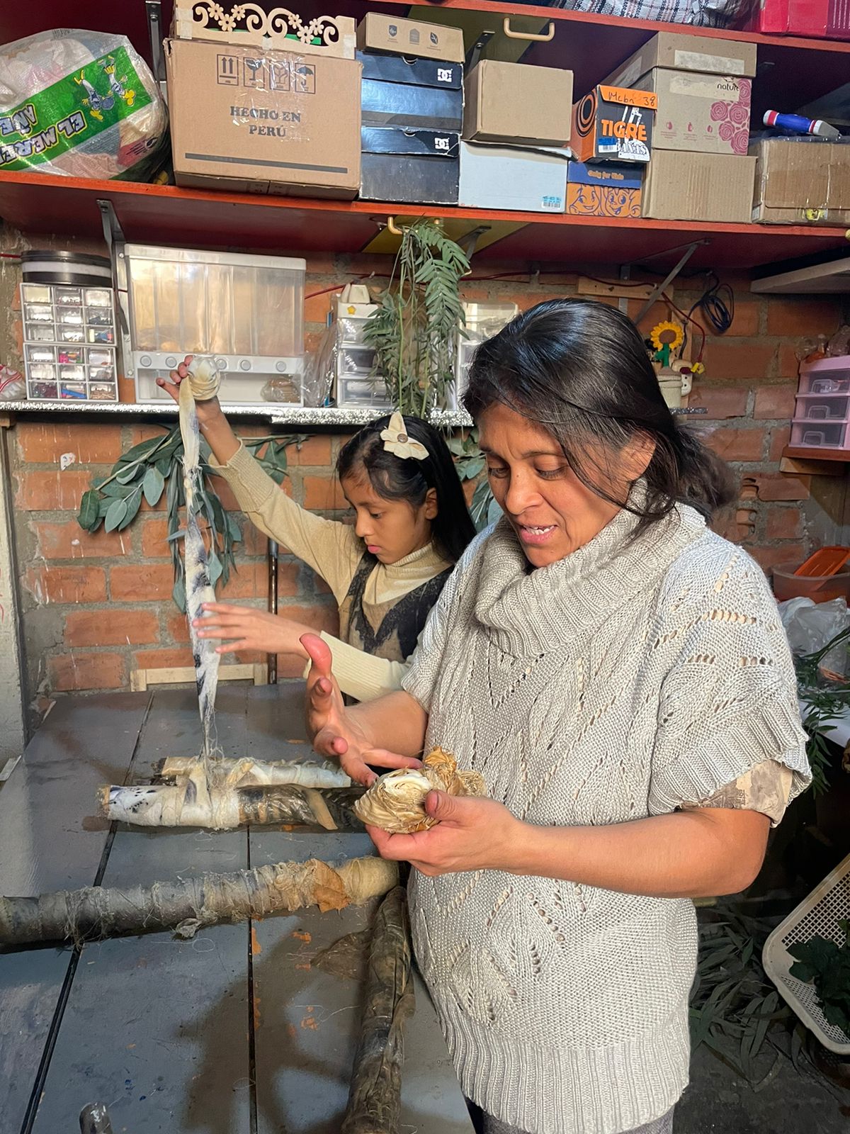 Diana’s journey into sustainable fashion was further solidified by her experience volunteering to clean up a petrol spill in the Central Peruvian jungle. Witnessing the devastation of pollution firsthand, she realized the importance of her work at Killa Natural. The process Killa uses is different from bigger industries, which rely on heavy pollutants and petrol, making cleanup very complicated. In contrast, Killa uses water to submerge plants and flowers, and used the leftover waste as compost. She believes that if more people shifted to sustainable and slow fashion, pollution would decrease, leading to cleaner rivers and jungles for the generations to come. In the future, Diana sees herself teaching these practices to other women and her grandchildren, learning more, creating, and innovating endlessly. She hopes to help others find meaning and purpose in their lives, just as she has found in hers.