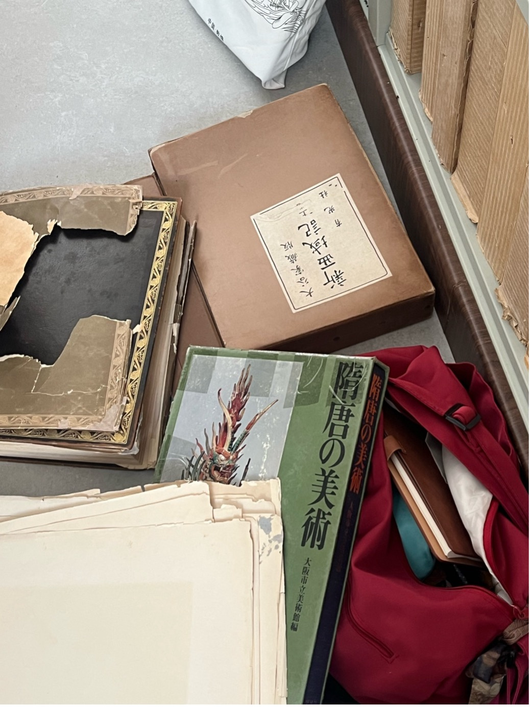 < The “crime scene” of rummaging through boxes at the Dunhuang Research Academy Library>