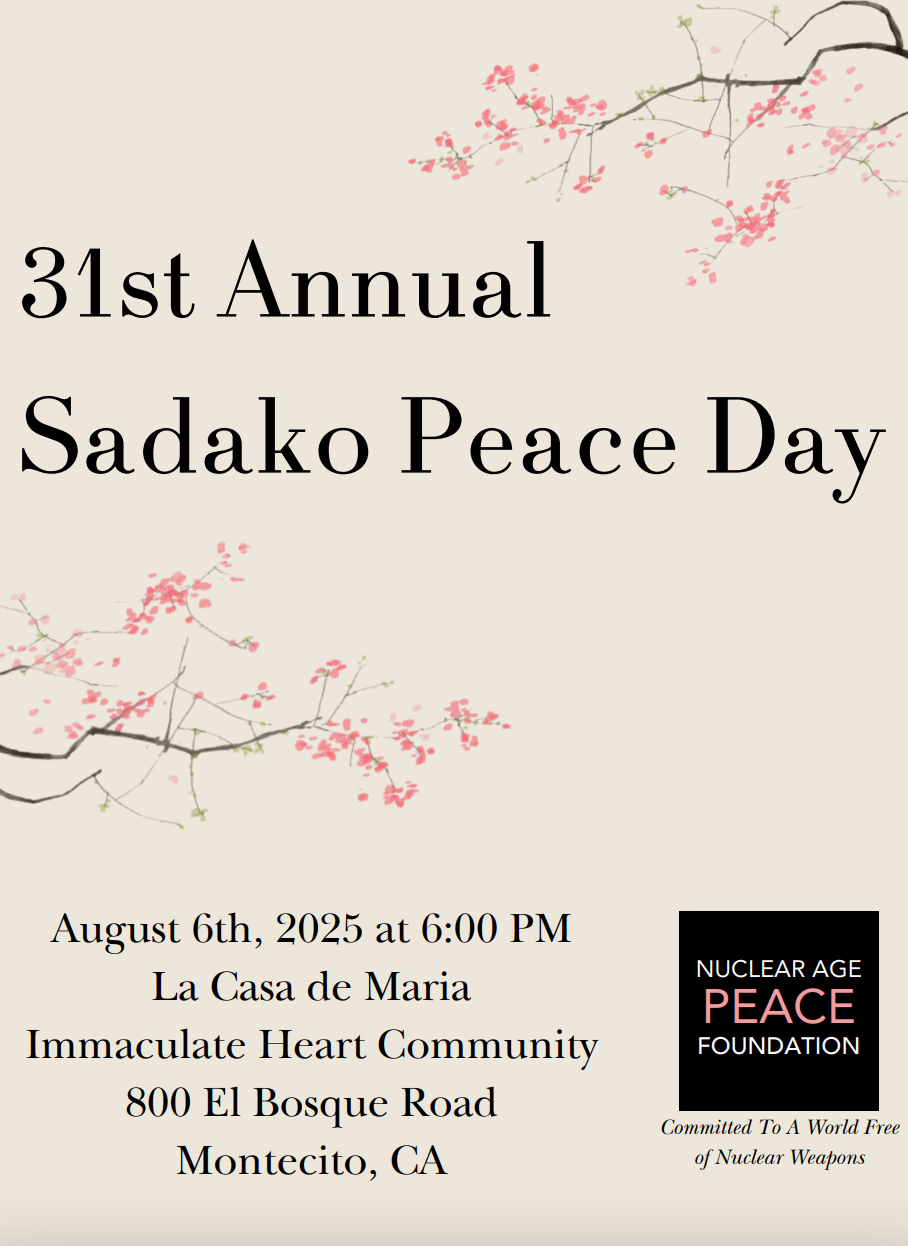 One of my goals as a Nuclear Age Peace Foundation intern is to raise awareness about the dangers associated with nuclear weapons. As part of this mission, our organization is hosting Sadako Peace Day, an annual event to remember the story of Sadako Sasaki and pay tribute to the victims of the 1945 atomic bombings of Hiroshima (August 6) and Nagasaki (August 9).