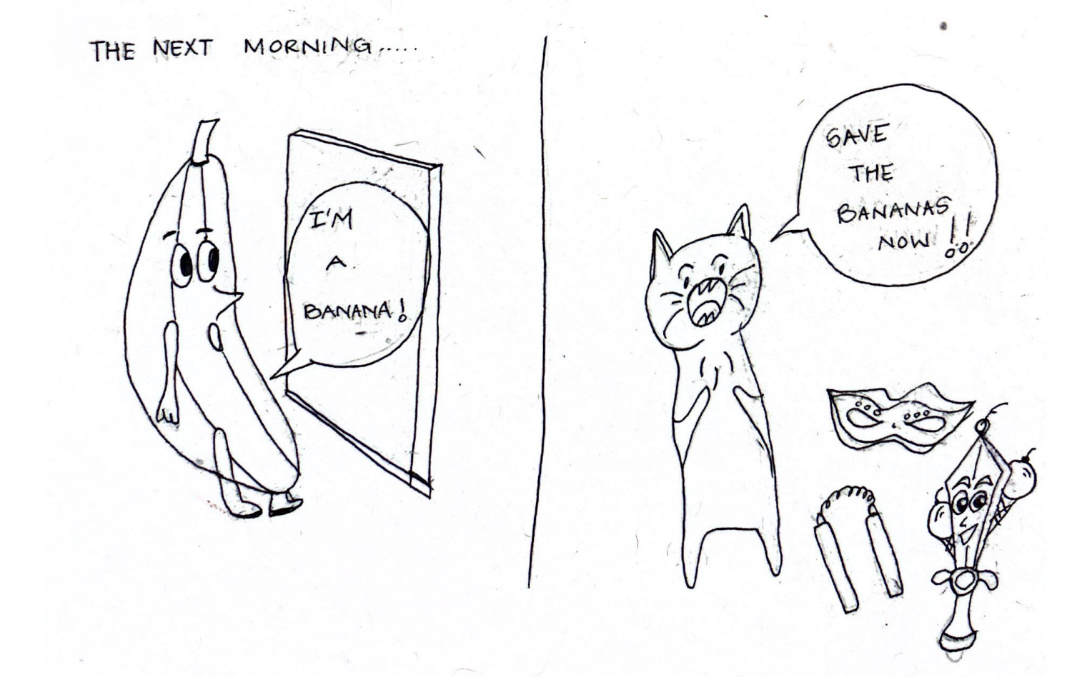 This slight modification to the curriculum model saw a very positive response from these students, with their teachers commenting that it was the first time these students willingly shared something with the class (even if it was just a sub group). Motivated by this, I tried to think of ways to empower the students who were excellent illustrators and expressed themselves through that medium as well in my next week. Simultaneously, I also took up duties as an illustrator for the students when our main illustrator called in sick, and instead of having my sketches based on the story created by the students as a stand alone for viewing, I photocopied my black-and-white cartoon creations and distributed them amongst the students to color. This made the activity more interactive and engaged visual senses of color and aesthetic amongst the students that was previously not present.