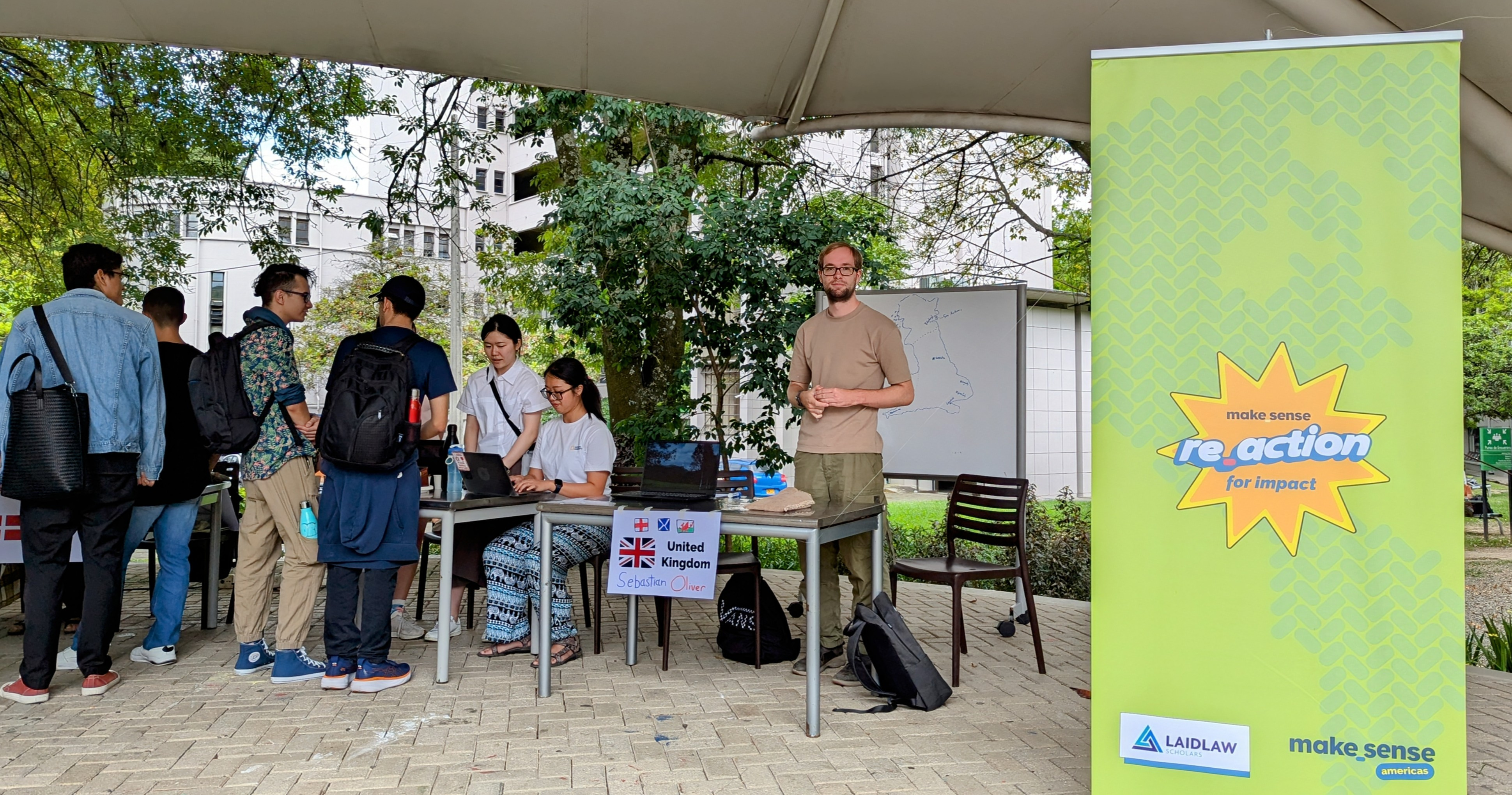 One of the week's highlights was the cultural fair at the Universidad Pontificia Bolivariana (UPB). This event provided a vibrant platform to share our cultural practices with Colombian students and discuss the various volunteering programs offered through make_sense's reaction projects. I hosted a stand about the UK with @Oliver Righton, and it was an success! Engaging with students, answering their questions, and sharing insights about British culture was fulfilling as UPB students were eager to share their own culture back.