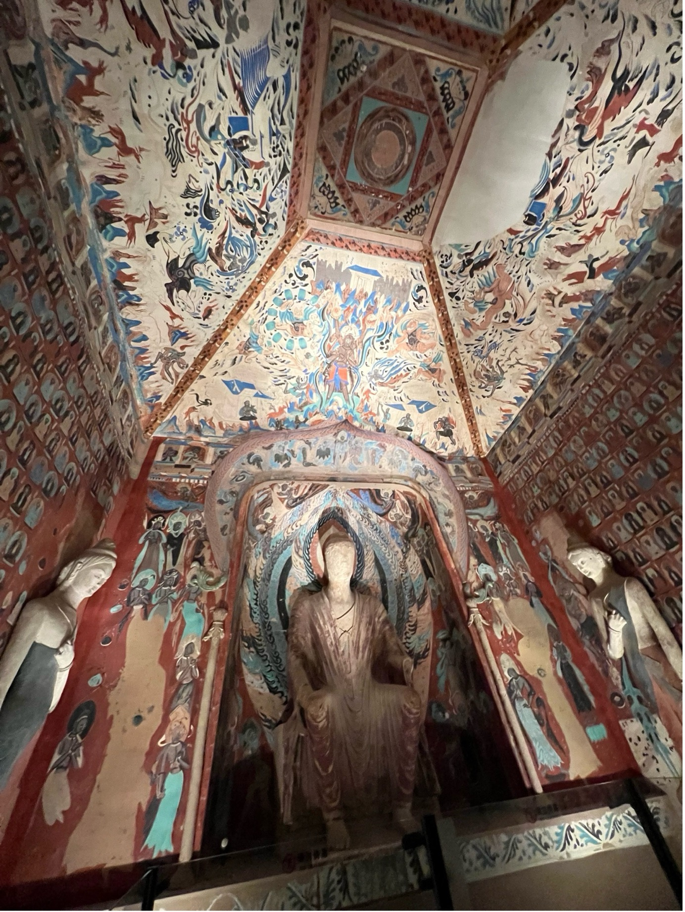 The most astonishing discovery was the “divine couple” in Cave 249 — a frame featuring an Indian Asura and the Chinese Thunder God side by side. Additionally, the “Taoist deities” depicted in the southern and northern murals had shifted careers to serve as Buddhist "guardians” —they are the elegantly dressed Eastern King and Western Queen. I likened this scene to “a multifaith conference of various divine systems in the sky—fluent in no language, yet seamlessly exchanging visiting cards at what I imagine as a cultural mashup café in Cave 249.” My teacher smiled and said, “Dunhuang has always been a cultural salon.” This reminded me of what Professor Ji Xianlin once said : “Throughout history, there have been four civilizations that have had a profound influence and developed their own distinct systems: ancient China, ancient Greece, Islam, and ancient India. These four great civilizations have only deeply converged in two places: Dunhuang in China and Xinjiang.”