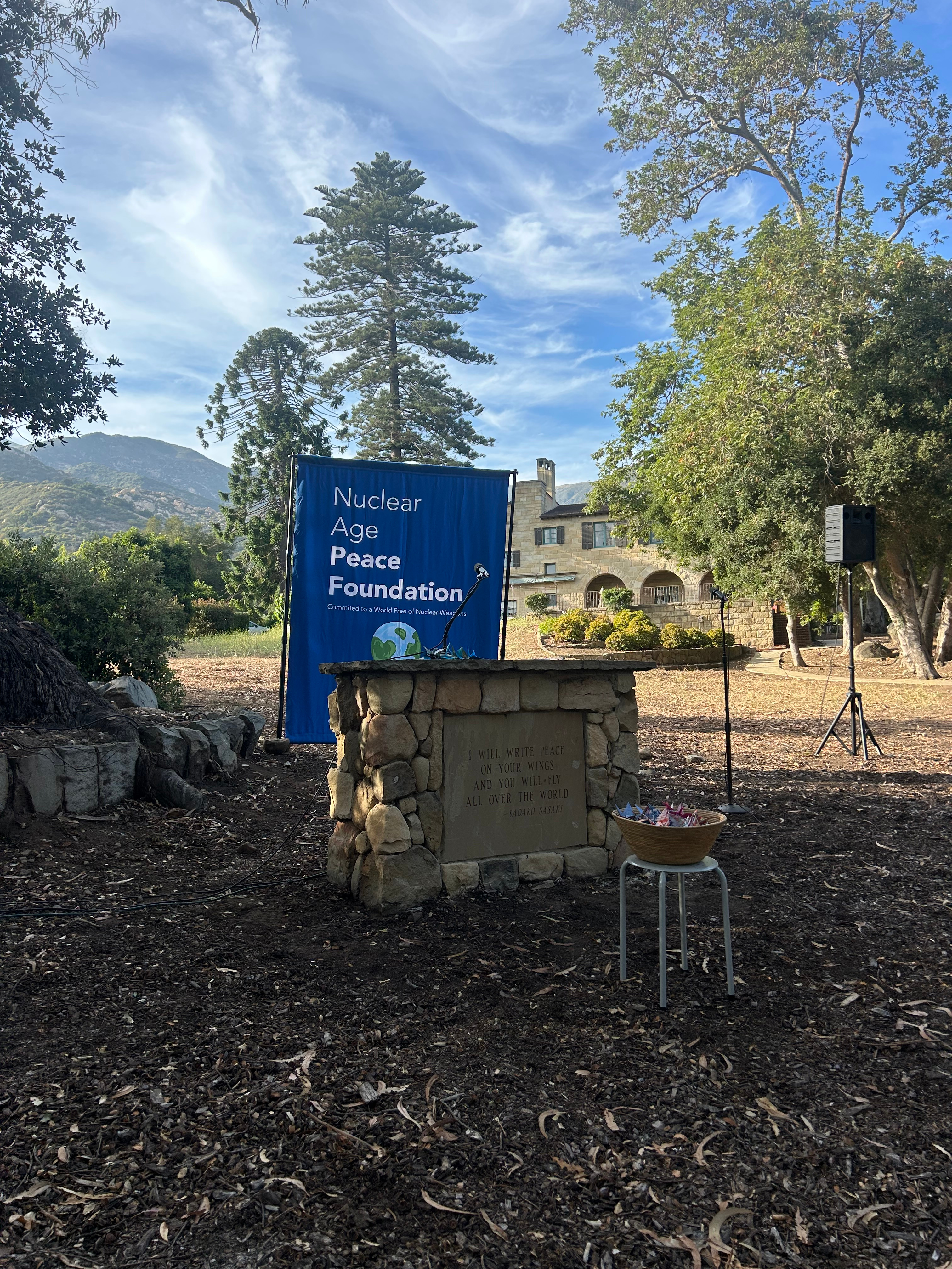 It has been three weeks since I came to Santa Barbara in order to work under the Nuclear Age Peace Foundation. Last Wednesday, I participated in Sadako Peace Day, taking on the role of Master of Ceremonies. In addition to making remarks at the beginning of the program, I guided the flow of the ceremony by introducing every speaker after.