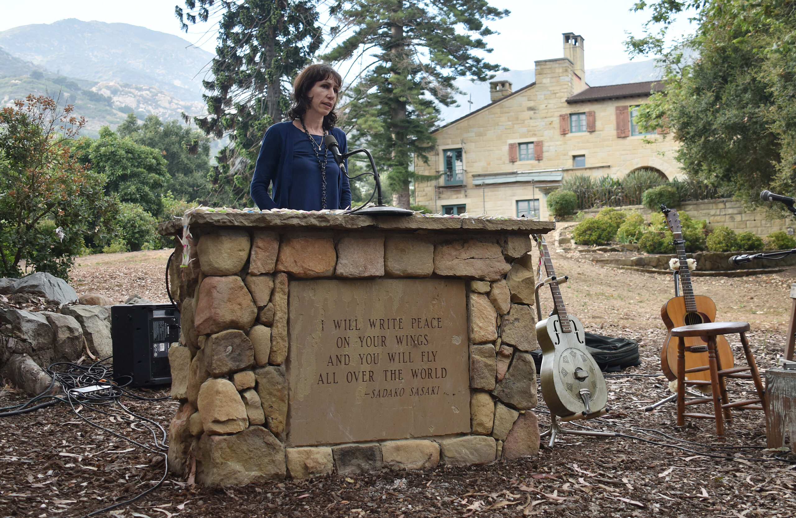 Dr. Ivana Hughes giving a speech at the Sadako Peace Day.