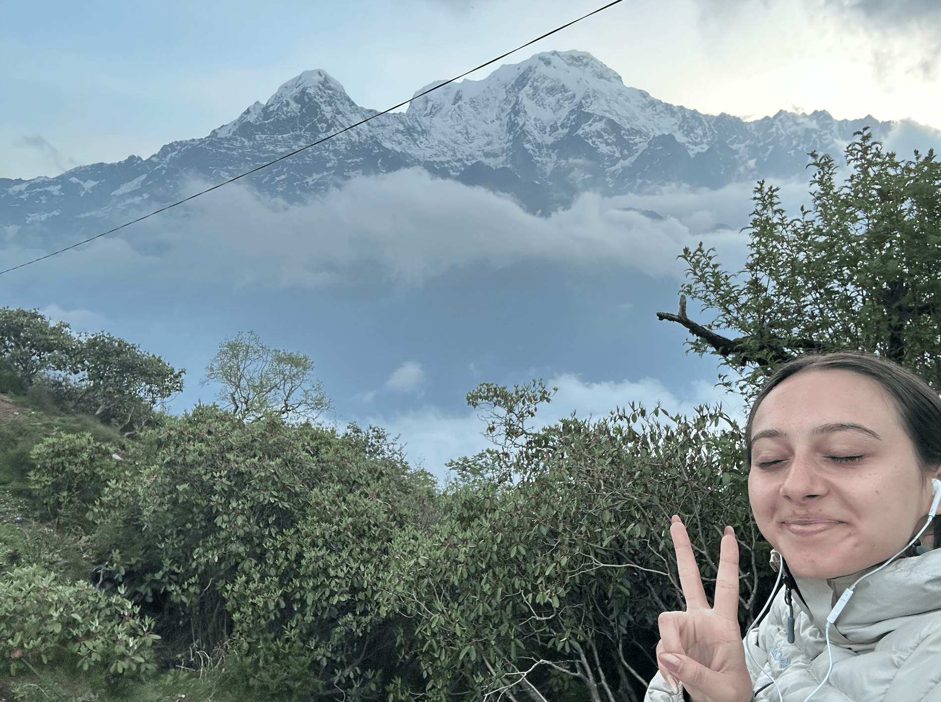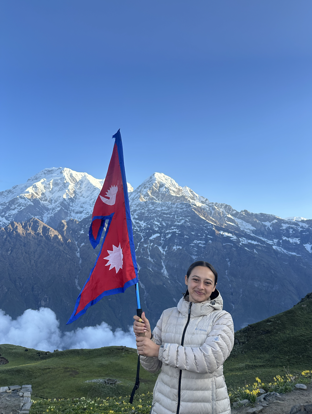 Of particular memory recently was when I went trekking through the Himalayas for 4 days. My office team had recommended that I take this trek to Mardi Himal, and therefore I got a long weekend off and went on a solo trek with a professional guide. I was in no contact with civilization for four days. The trek itself was highly difficult and was something I had never done before. We walked 6-8 hours uphill every day for 3 days, and on the 4th day we walked uphill for 2 hours at 3 AM and trekked back down to civilization for another 6 hours. The views through the jungles and the mountains were beautiful. Every night I could feel the physicality of trekking as my entire body was sore by the first night, but I kept going because I wanted to get to the top. On the third night, the guide and I woke up at 3 AM and trekked another 2 hours uphill to the top of Mardi Himal Viewpoint, where I got to see the most beautiful sunrise of my life coming from behind the Fishtail Mountain. Getting to the top was an experience like no other. I saw beautiful stars throughout all three nights, and the view from 4500 meters high in altitude was an experience like no other. I also got to interact with the Sherpas who live high up in the mountains. Speaking Nepali myself, I was able to connect deeply with them and understand their stories and life experiences. I have included some photos of my journey below: