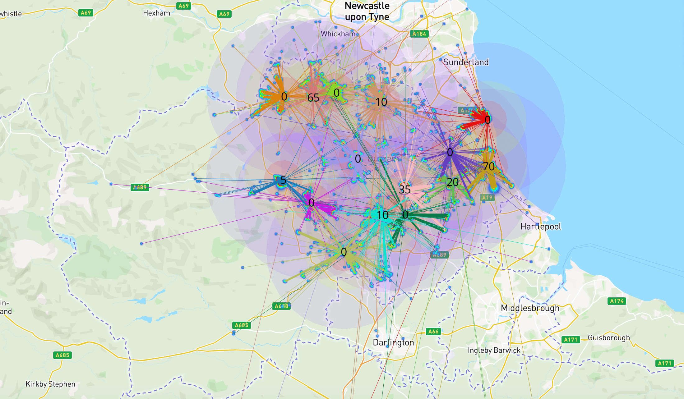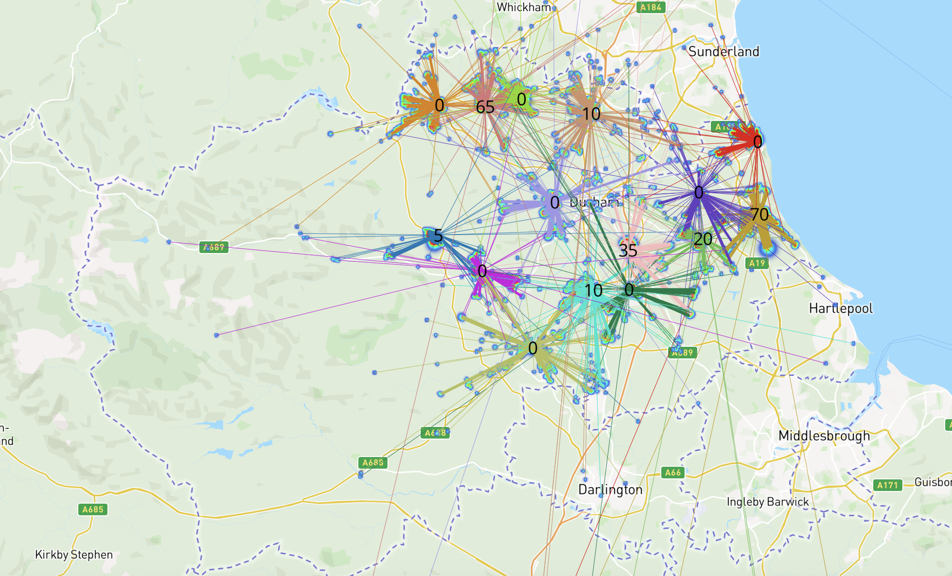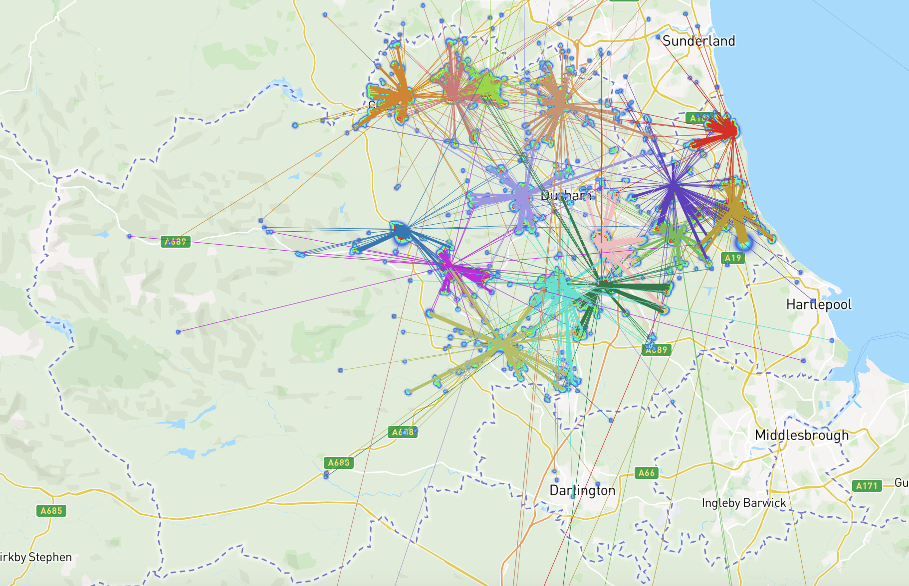 During this week, I have mapped the lines of which person on the heatmap travelled to where, this helps in visualising and understanding how far people travel to the hub and thus might have a need in having a hub in the nearby region.
