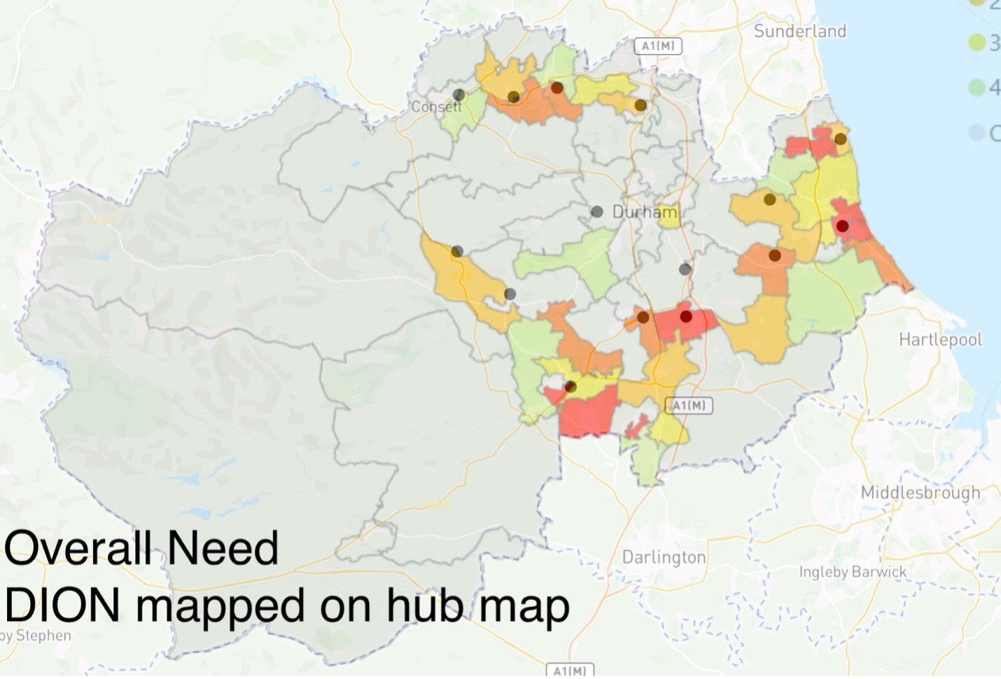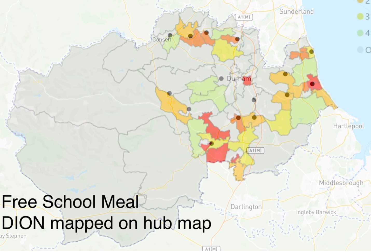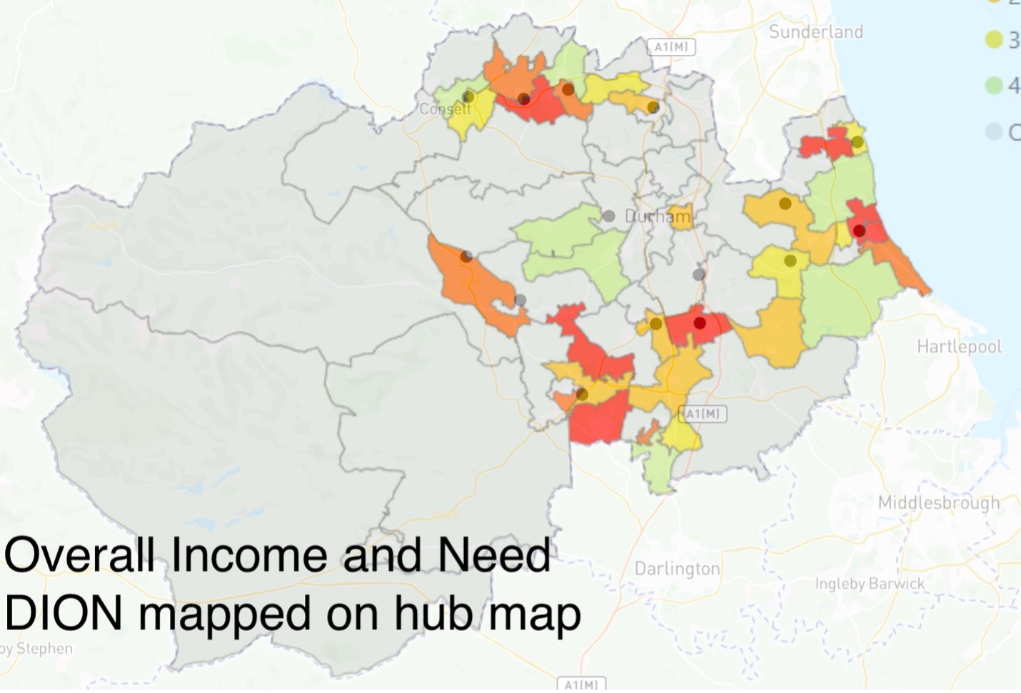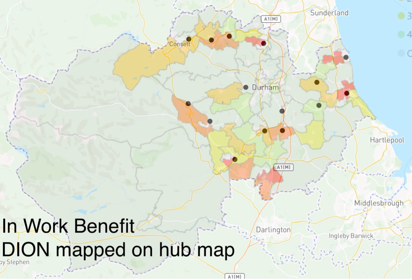 During this week, I have used data from the Durham County Council on different matrics on poverty `and overlay it on the map to help in deciding the recommended list of new hub location.