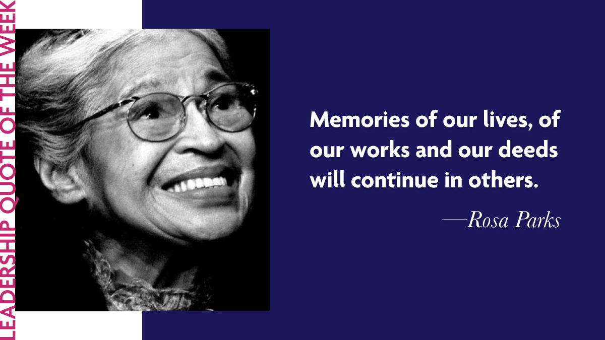 As we celebrate US Black History Month, we turn to the words of Rosa Parks, the American civil rights activist who famously refused to give up her seat on a segregated bus. In this week’s quote, Parks reminds us that as leaders, our work extends beyond ourselves - it influences and inspires those around us: