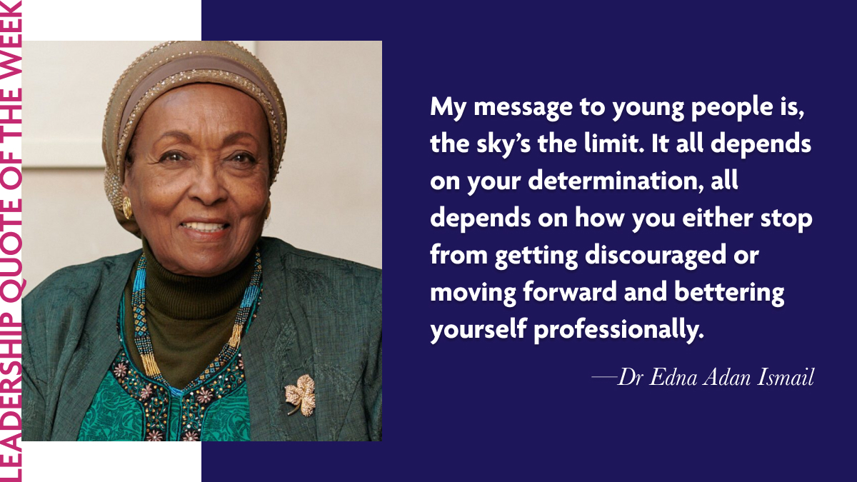 For our Leadership Quote of the Week, we turn our attention to the remarkable Dr. Edna Adan Ismail, a woman whose life and work profoundly embody our Laidlaw Scholar values of #Brave, #Good, and #Determined.