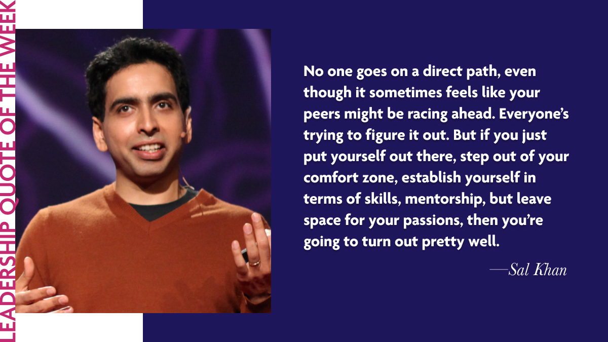 Sal Khan’s quote reminds us that leadership is as much about skill development, self-discovery, and persistence as it is about achieving milestones. His advice encourages emerging leaders to embrace their unique journeys, recognising that the path to success is often non-linear and requires a balance of #dedication, #adaptability, and a #passion for making a difference.