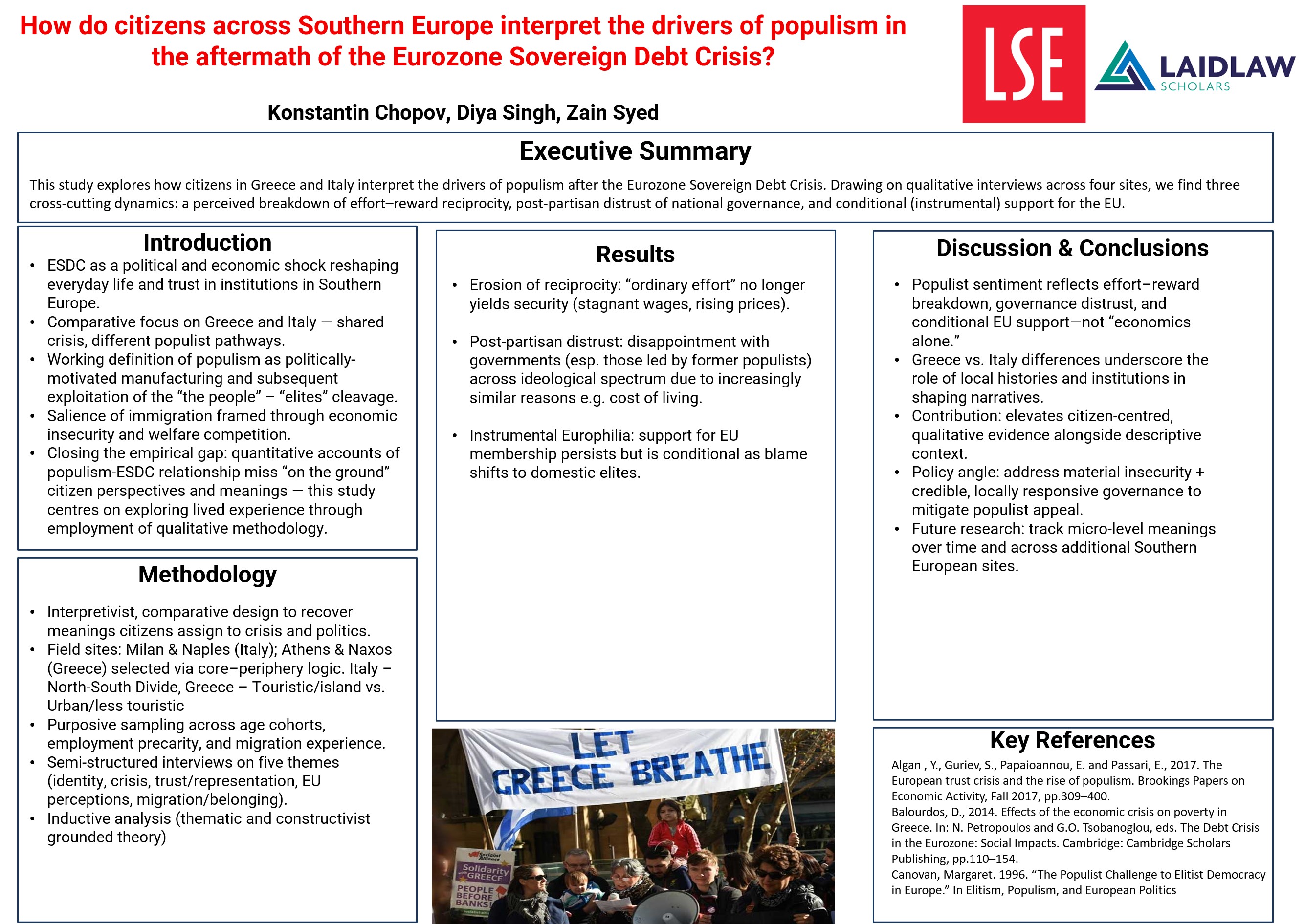 Project Poster - How do citizens across Southern Europe interpret the drivers of populism in the aftermath of the Eurozone Sovereign Debt Crisis?