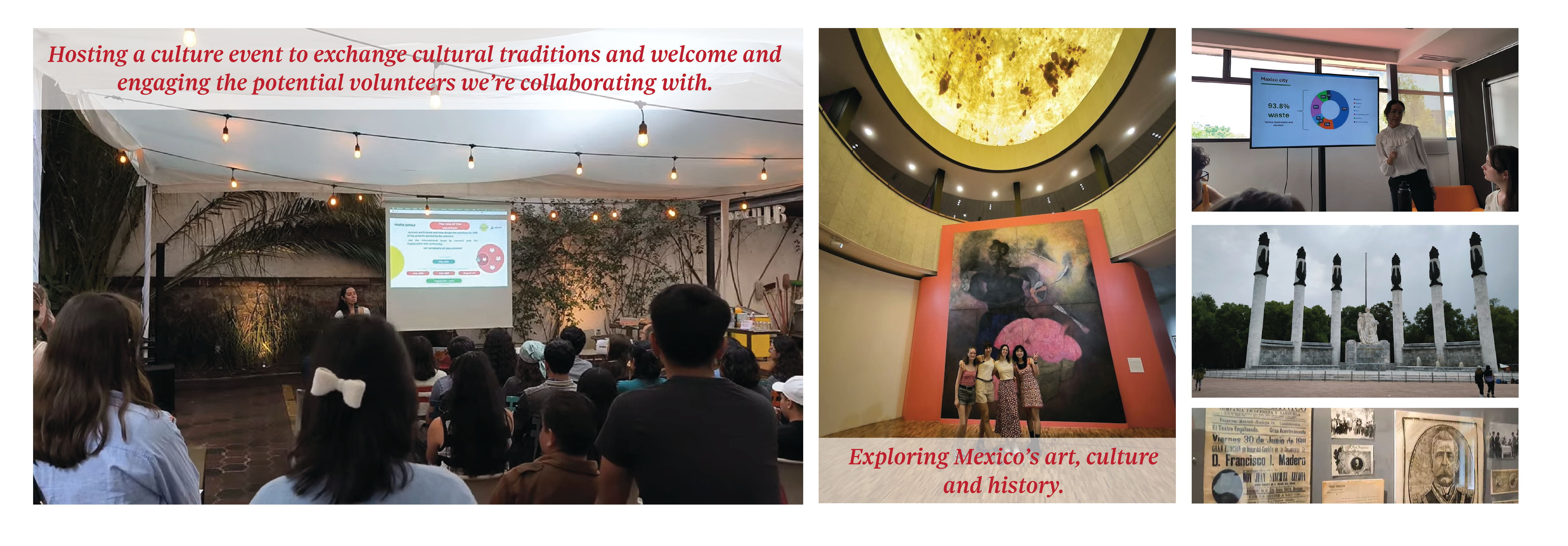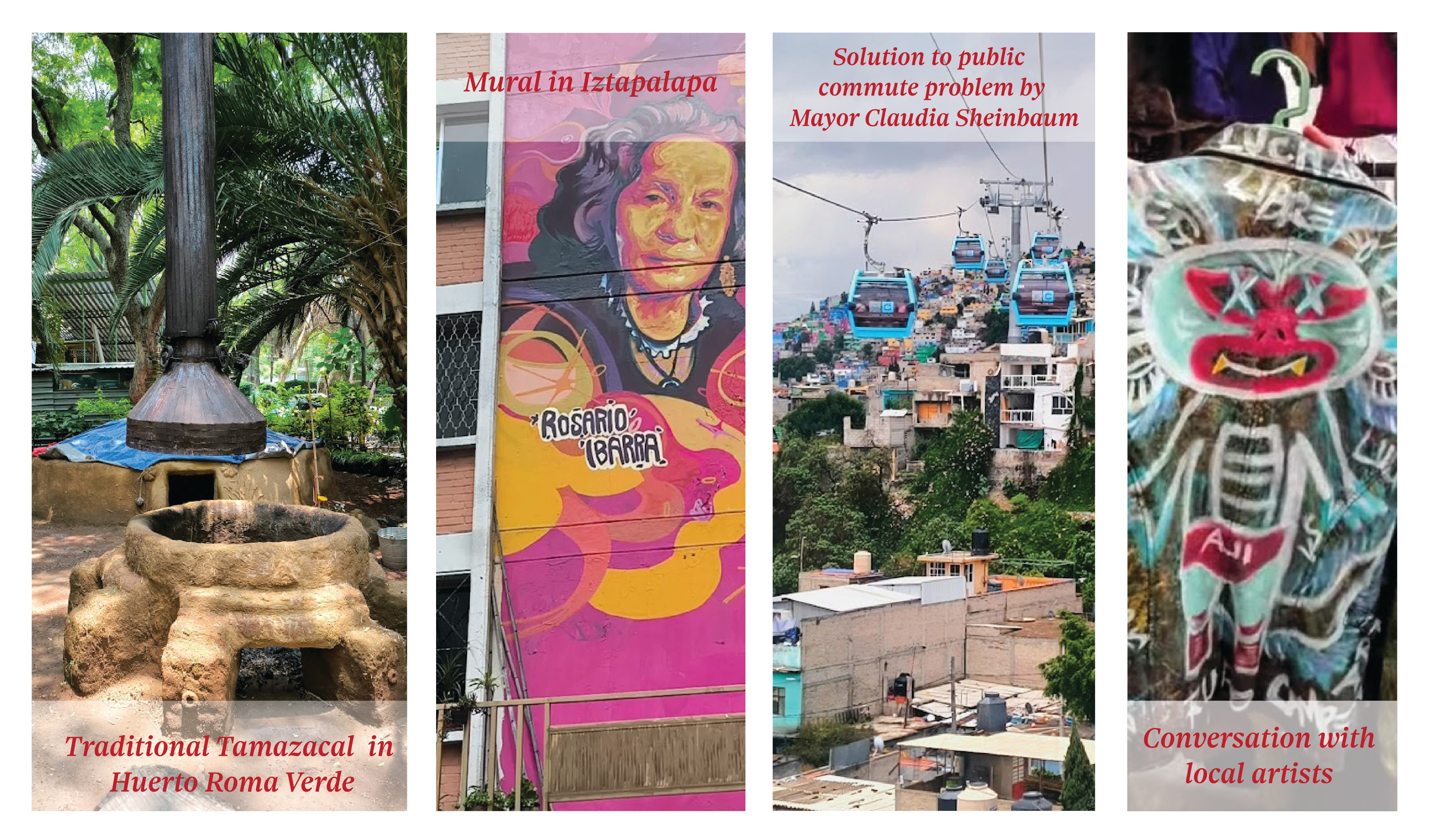 I learned about the qualitative and quantitative aspects of Mexico City, such as its huge problems with garbage management, water distribution/availability, and extreme pollution. Equally notable was the liveliness of Mexico City's culture and the goodness embedded in people's nature. It was heartwarming to see how passionate people are about the community, openly discussing important aspects and eagerly hosting events to spread awareness and educate both foreigners and locals, emphasizing the significance of passing on ancestral wisdom.