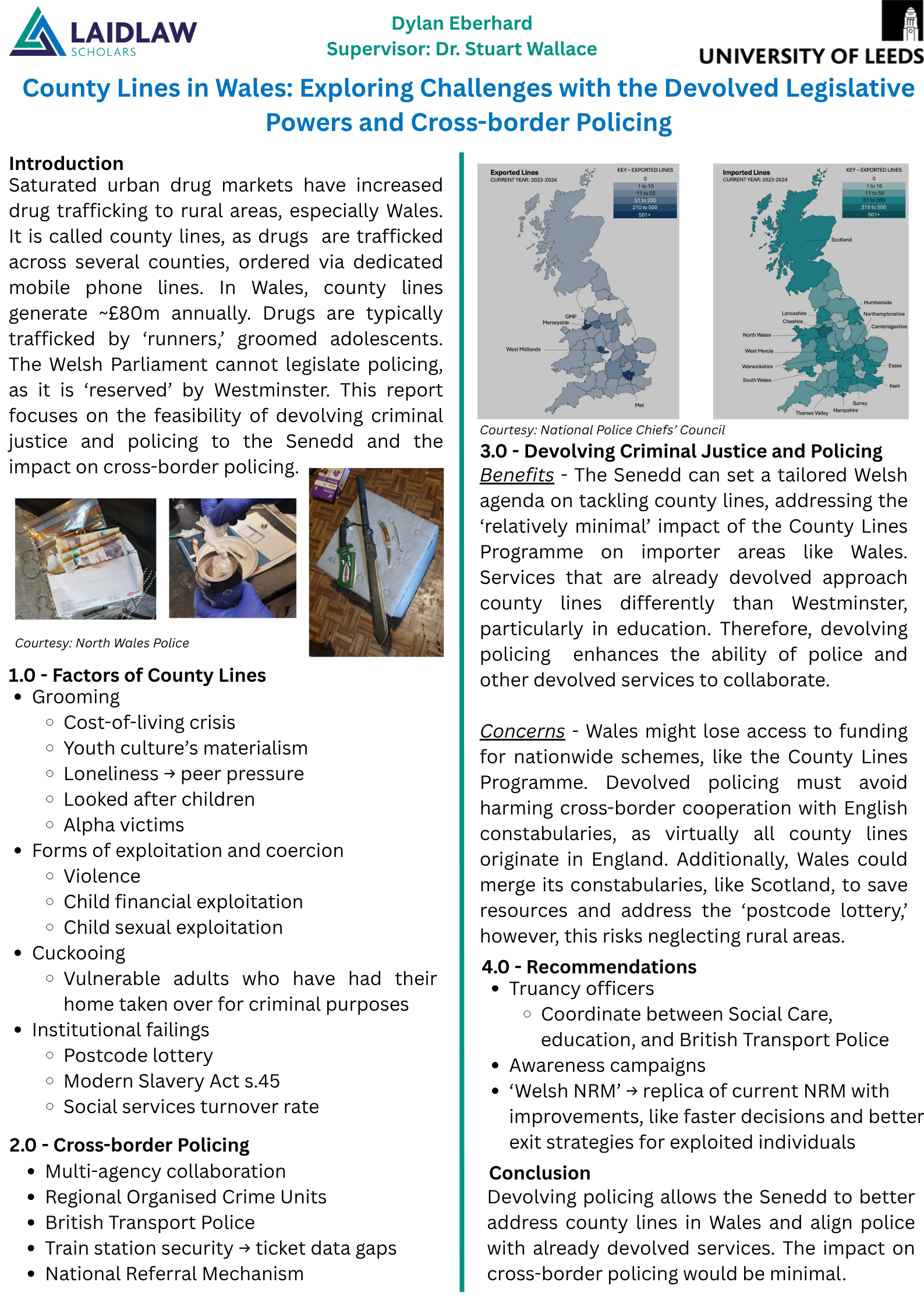 Research Poster: 'County Lines in Wales: Exploring Challenges with the Devolved Legislative Powers and Cross-border Policing'