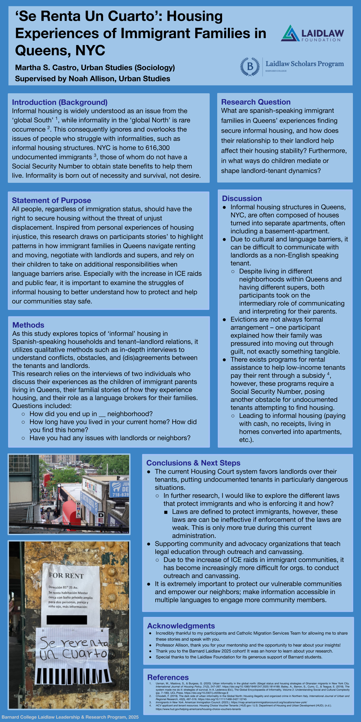Research Poster -- ‘Se Renta Un Cuarto’: Housing Experiences of Immigrant Families in Queens, NYC