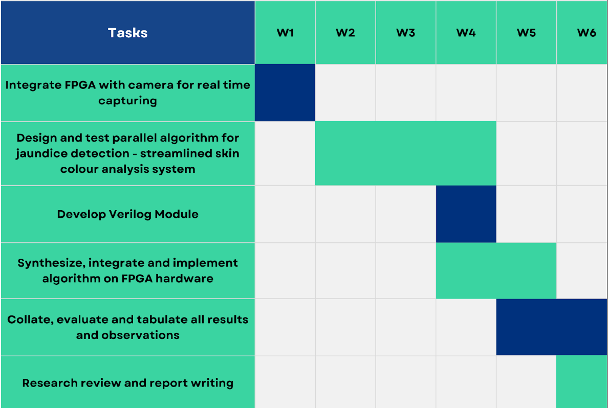 - Analyse and conclude on the feasibility of using FPGA Camera-Based system for neonatal jaundice detection.