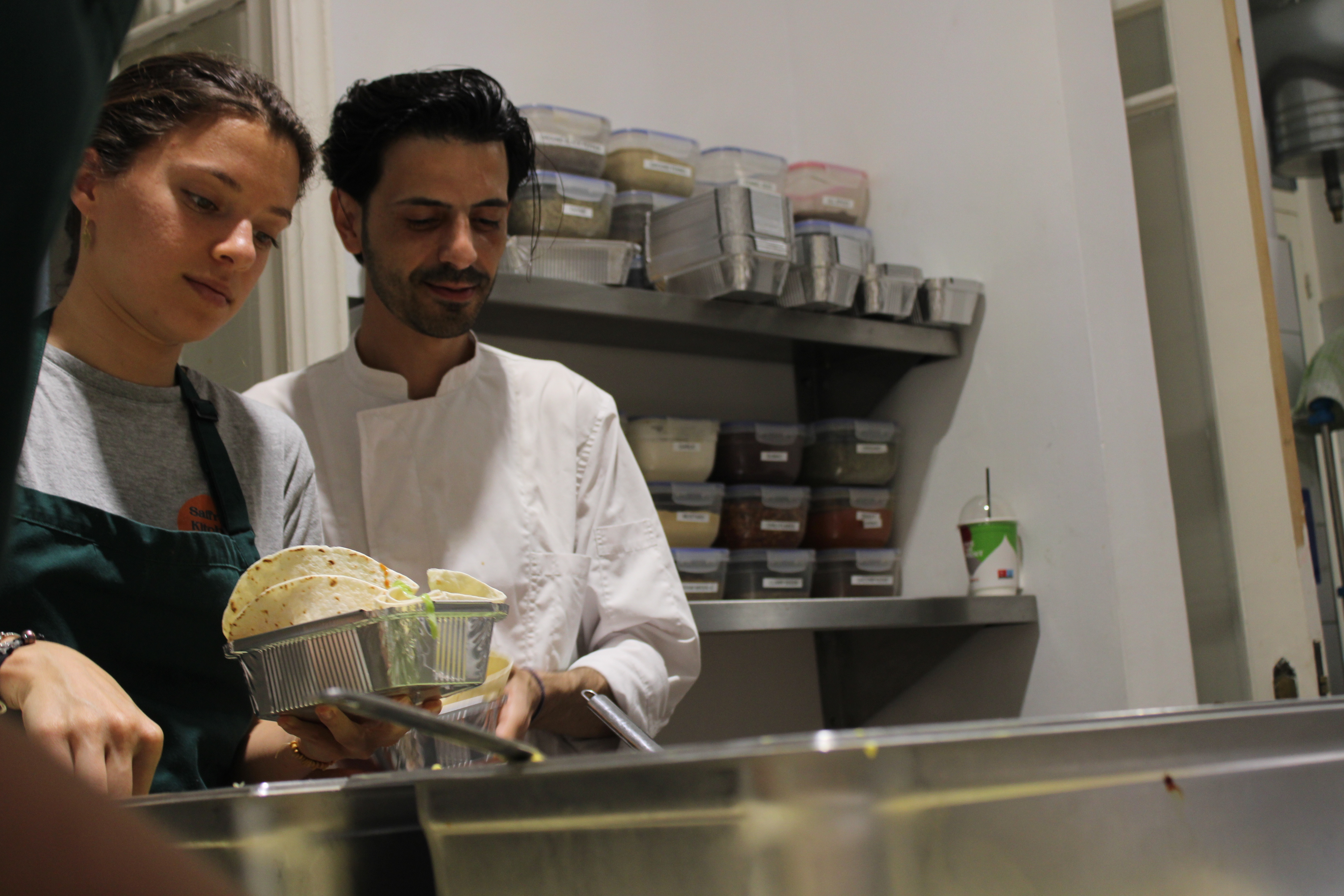Despite the huge quantities cooked every day at SKP, it's an oasis of calm most days. Sharing a building with two other charities, the process of cooking and packing meals is second nature to chefs Adel and Mamadou. The volunteers who arrive and help out - whether a half-day or six weeks - quickly pick up the rhythm too.