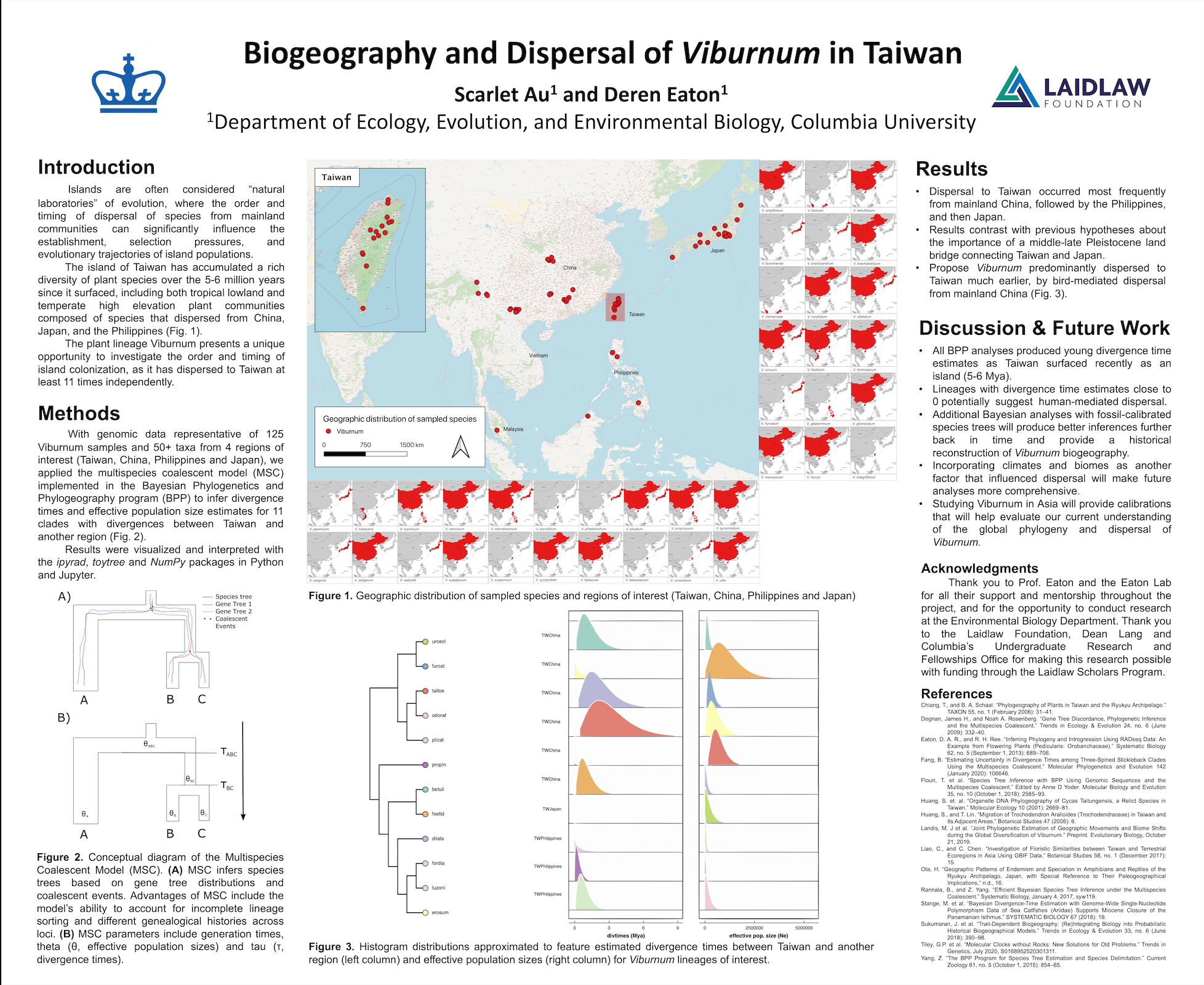 This summer, I conducted research at Columbia's Eaton Lab and presented my work at the Columbia Research Symposium as a Laidlaw Scholar. My research is focused on plant genetics and evolution, and features using computational methods to study dispersal and migration.