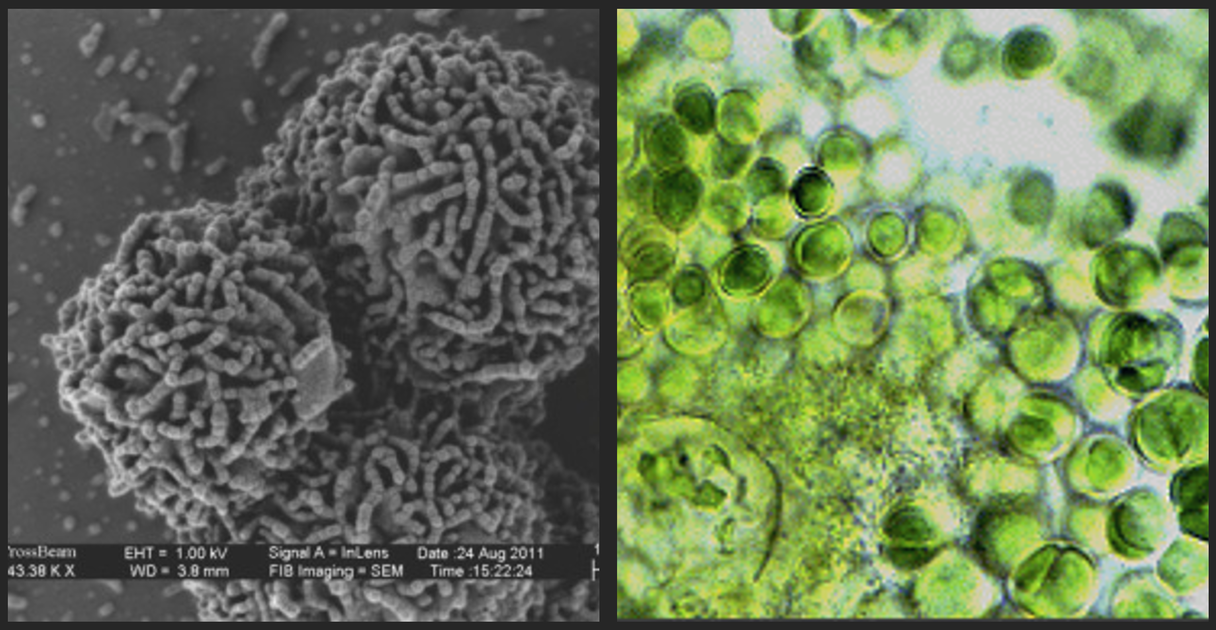Left: Planococcus Halocryophilus. Right: Chroococcidiopsis.