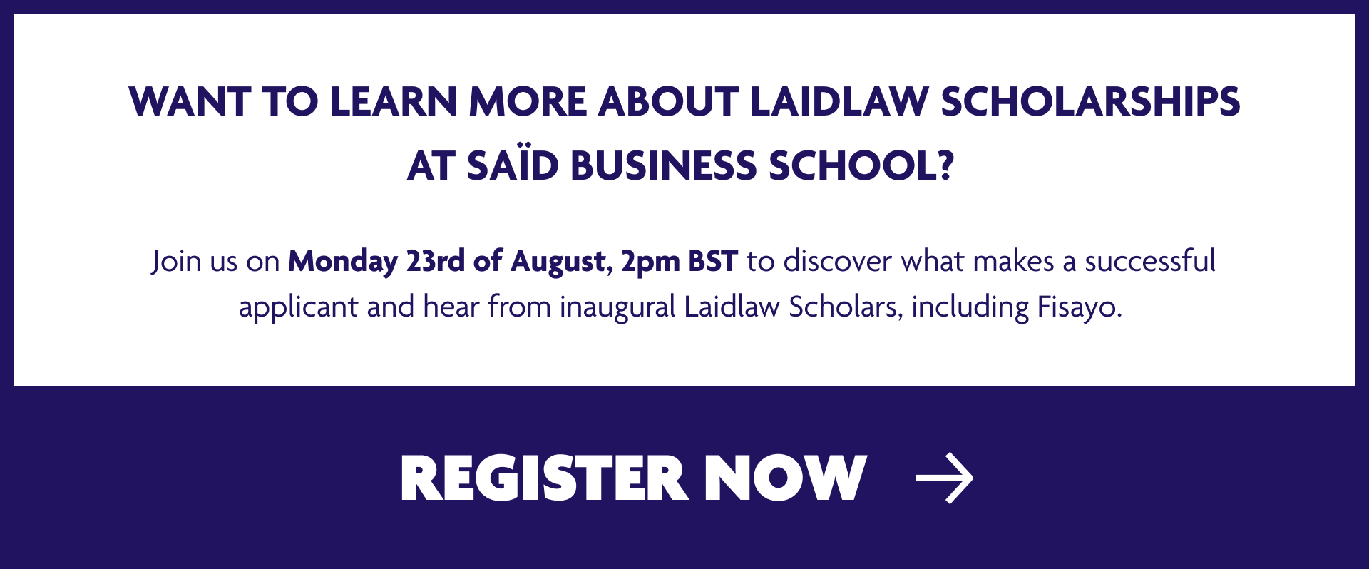 Fisayo is a Laidlaw Scholar at Oxford University's Saïd Business School. The Laidlaw Women's Business Education Scholarship aims to help build a pipeline of future women leaders through access to best-in-class education, resources and global networks by providing full and half scholarships to women who would not otherwise be in a position to reap the benefits of attending an outstanding school.