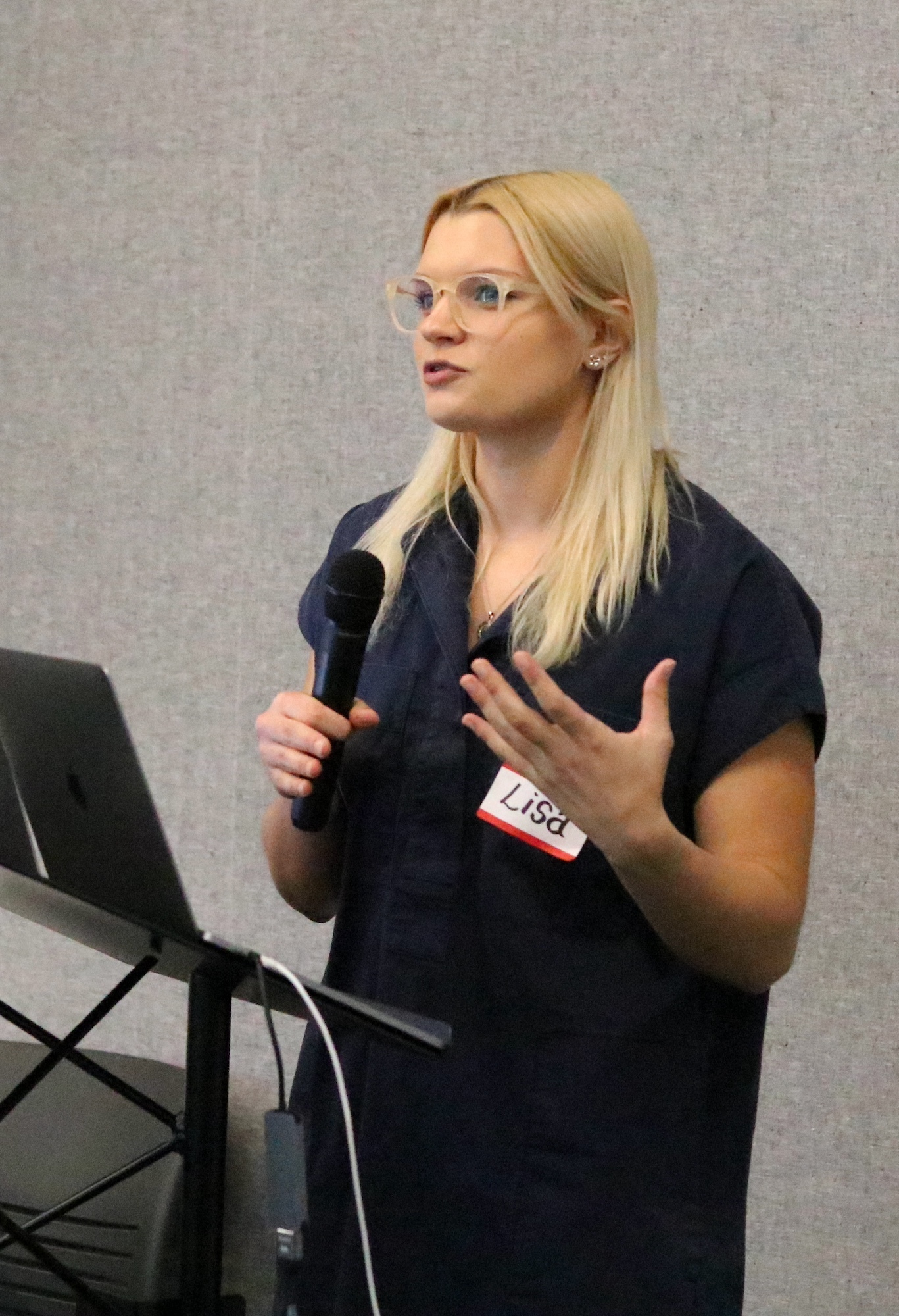 Lisa presenting to attendees at the 2024 Rural Schools Collaborative Regional Hub Summit about her research on university-community partnerships and how they may increase rural student enrollment and attainment.