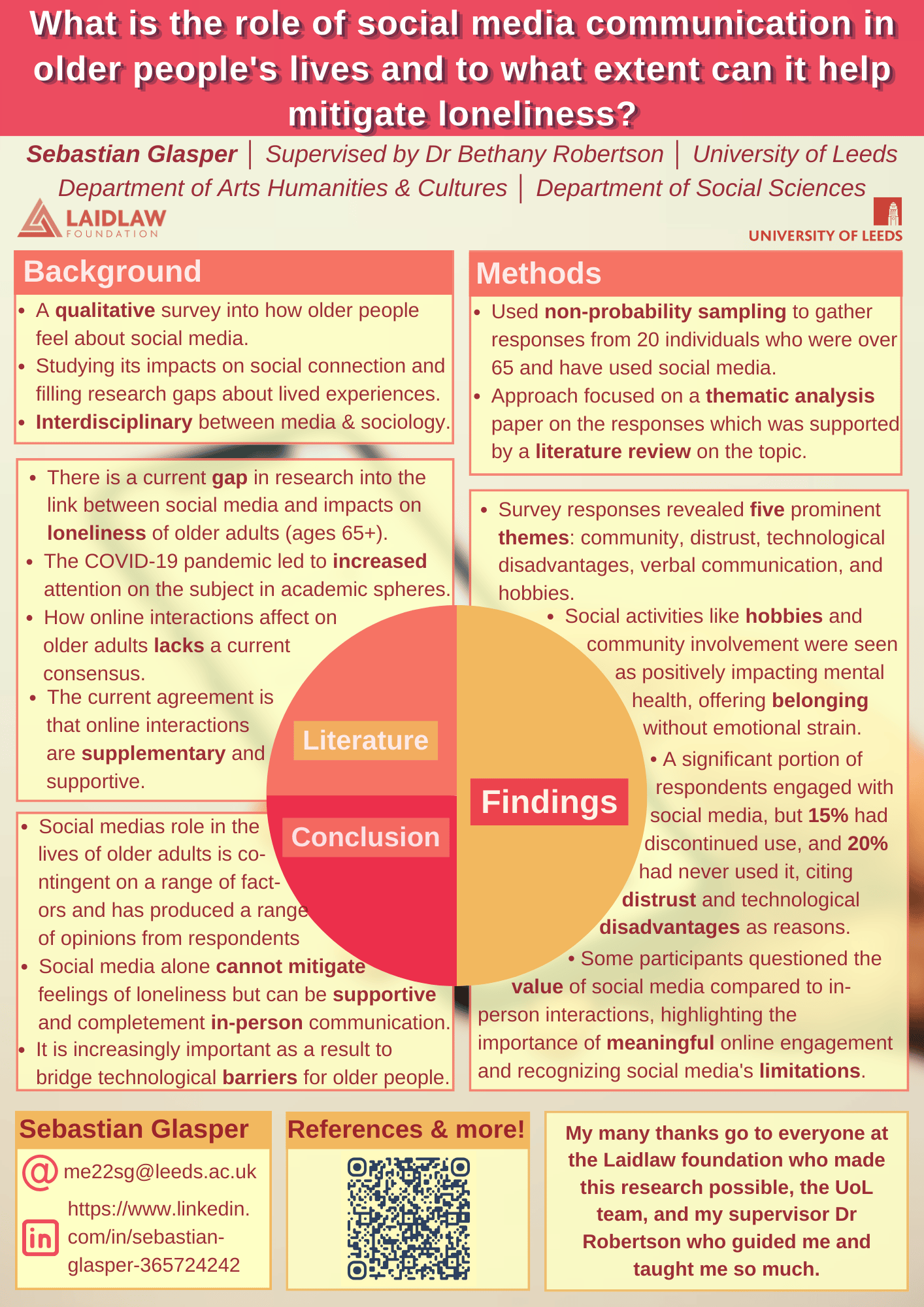 My research poster for my summer research project: What is the role of social media communication in older people's lives and to what extent can it help mitigate loneliness?