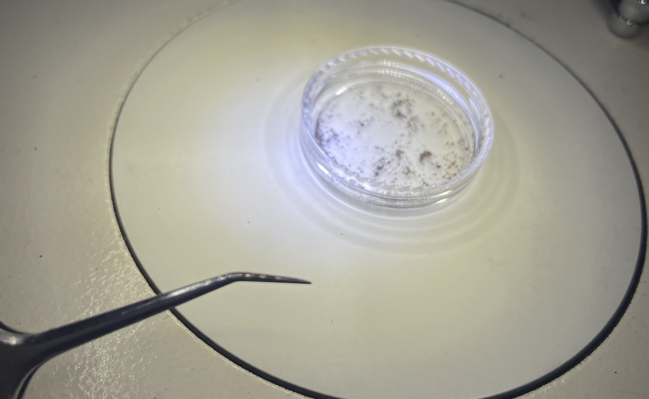 The amount of rejection I faced was overwhelming. Despite extensive discussions about risk assessments, safety precautions, and overcoming numerous other obstacles from multiple locations, I was ultimately only able to collect samples from two of the sites. My initial goal was to collect samples from 5-10 different sites, so being unable to meet my goal left me feeling pretty demotivated. Despite this, I was still able to get around 2-3 kg of material from each location. Which once processed by size and magnetic separation turned into just a few grams of samples. However, even those few grams were enough of a challenge as the process of choosing candidates through the optical microscope proved to be excruciatingly long and tedious. After the magnetic separation, most of the particles looked the same. As this area is relatively new in terms of research, there wasn’t much literature available to reference that would help me identify suitable candidates for the SEM. This combined with the sheer magnitude of samples I had to go through made it difficult to select the right candidates.