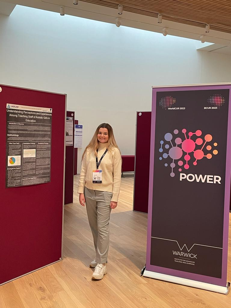 As an undergraduate student with a passion for research, I was thrilled to be selected to attend and present at the prestigious British Conference of Undergraduate Research (BCUR) held in conjunction with the World Conference of Undergraduate Research at the esteemed University of Warwick. After months of hard work and dedication, I had the honour of sharing the research I worked on titled 'Understanding Perceptions and Experiences Among Teaching Staff of Autistic Girls in Education,' which was a part of my Laidlaw leadership and Research project.