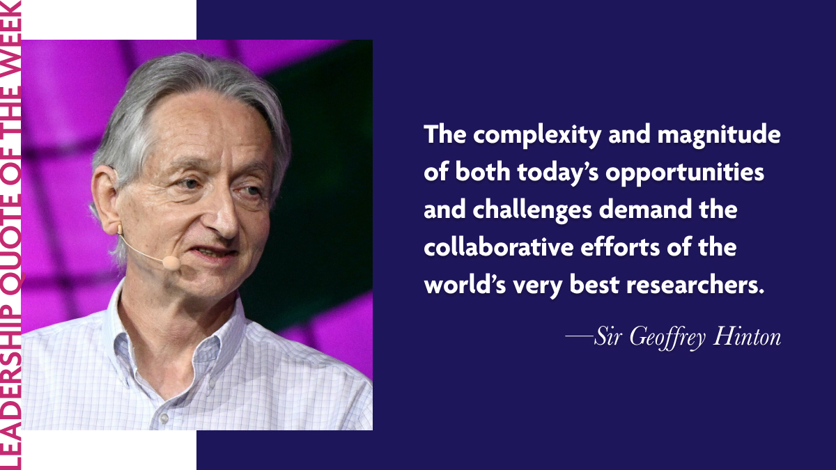 Sir Geoffrey Hinton’s words remind us that the most significant advancements come from collective intelligence and cooperation. His legacy teaches us that by working together, we can address the complexities of our world and unlock extraordinary potential. As leaders, embracing this mindset allows us to harness diverse perspectives and skills, driving progress and innovation.