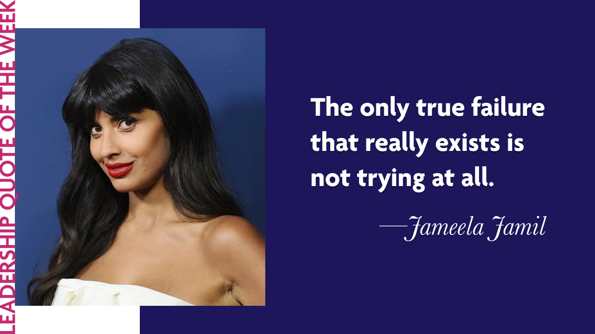 We invite you to sit with Jameela Jamil's words. In your research, your Leadership in Action project, or your wider studies, where have you held back from attempting something because the risk of not succeeding felt too great? What would it mean to measure your commitment not by its outcome, but by your willingness to show up for it at all?