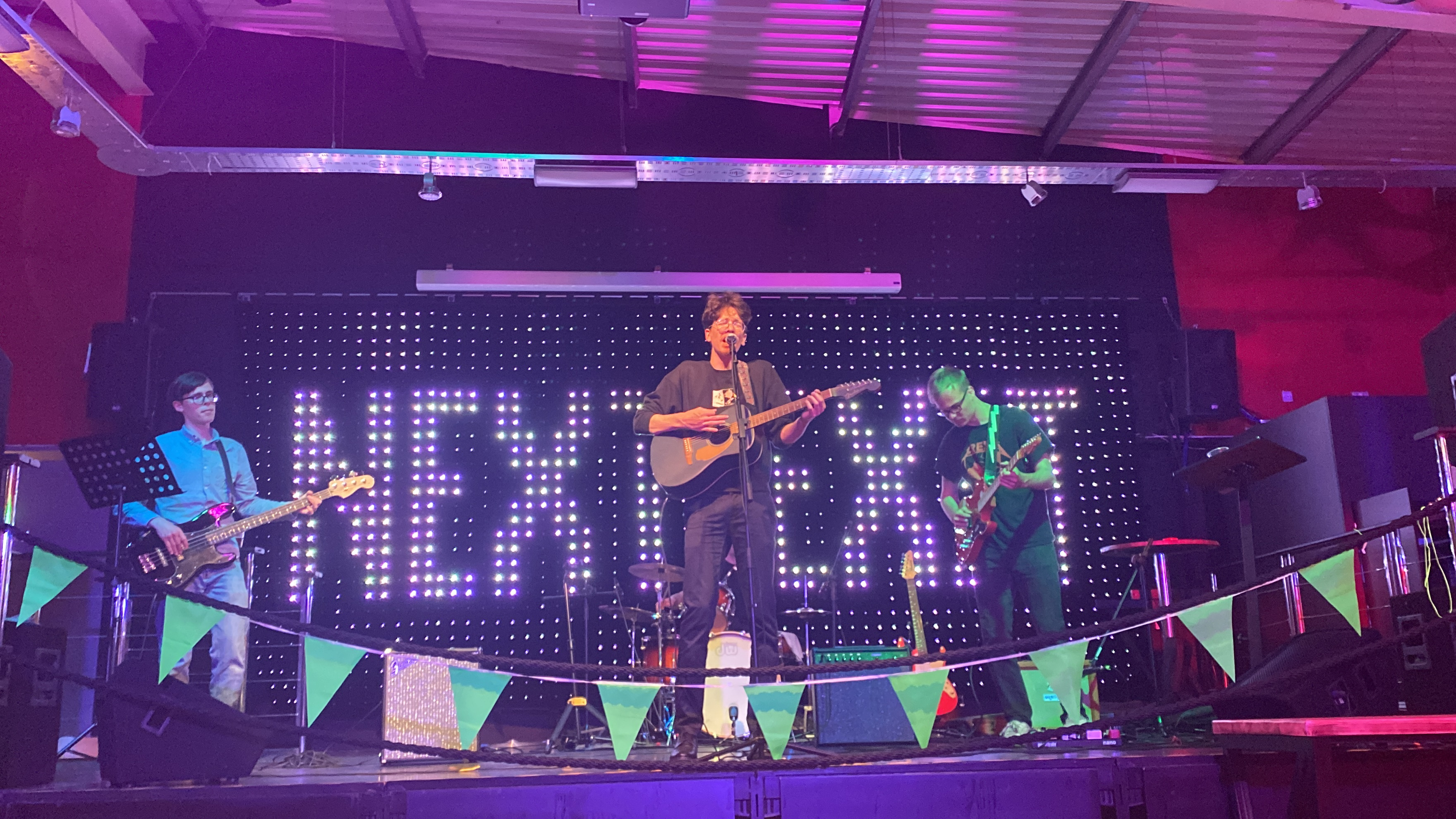 The event then continued into the night with a lively, exciting music event in the college bar, JBs. We had 3 musical acts perform: Emily Wilson, Niteflight and Next Exit – see photos of the talented band, Next Exit, below! Everyone chatted, laughed and danced the night away – the atmosphere in the bar was electric. Towards the end of the night, we drew the winners of the raffle (I had organized prizes from a range of local business) and I took the opportunity to make a speech about the work that If U Care Share are carrying out across the North East and how their online resources can be accessed.