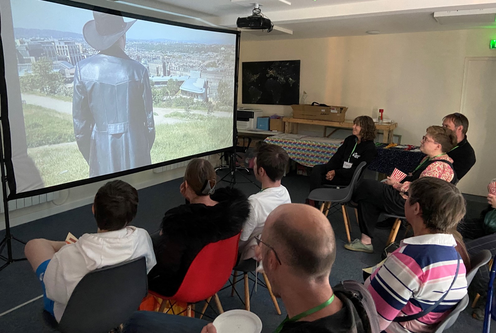 As my own LiA project drew to a close, I attended the final showcase of the works produced during the spring sessions at Impact Arts to see the completed projects created by the programme participants. Impact Arts’s focus on wellbeing and creating comfortable spaces for their participants continued into the showcase event, with each guest donning a lanyard with their name and a coloured band corresponding to their willingness to speak with other attendees upon entering the venue. Each of the films were shown twice during the event, with an opportunity for the participants to do an informal talkback to the showcase guests after the screenings. While watching the films created by some of the participants that I had met during the programme sessions in the weeks prior, I found it wonderful to see how taking on acting roles allowed these young people to express themselves confidently and often humorously in front of the camera. Whether delivering witty one-liners as a mysterious detective character or channelling a comedically stuffy and pretentious persona through a Muppet lip-synching to Johnny Cash’s ‘Ring of Fire’, the participants made unique projects that enabled them to express themselves authentically and creatively.