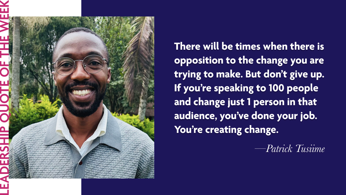 Patrick Tusiime: “There will be times when there is opposition to the change you are trying to make. But don’t give up. if you’re speaking to 100 people and change just 1 person in that audience, you’ve done your job. You’re creating change.”