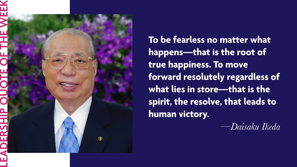 To be fearless no matter what happens—that is the root of true happiness. To move forward resolutely regardless of what lies in store—that is the spirit, the resolve, that leads to human victory.