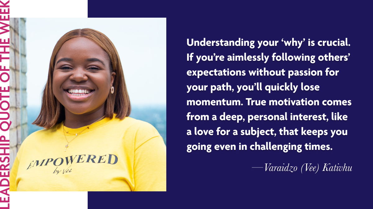 Vee's quote underscores the importance of aligning one's actions with their true interests and passions, a principle that she not only advocates but also lives by. Her "why" is rooted in her passion for education and her commitment to bridging the gap in educational opportunities for underrepresented youth. Vee's journey is a testament to how a strong, personal "why" can fuel enduring motivation and lead to significant contributions in one's chosen field.