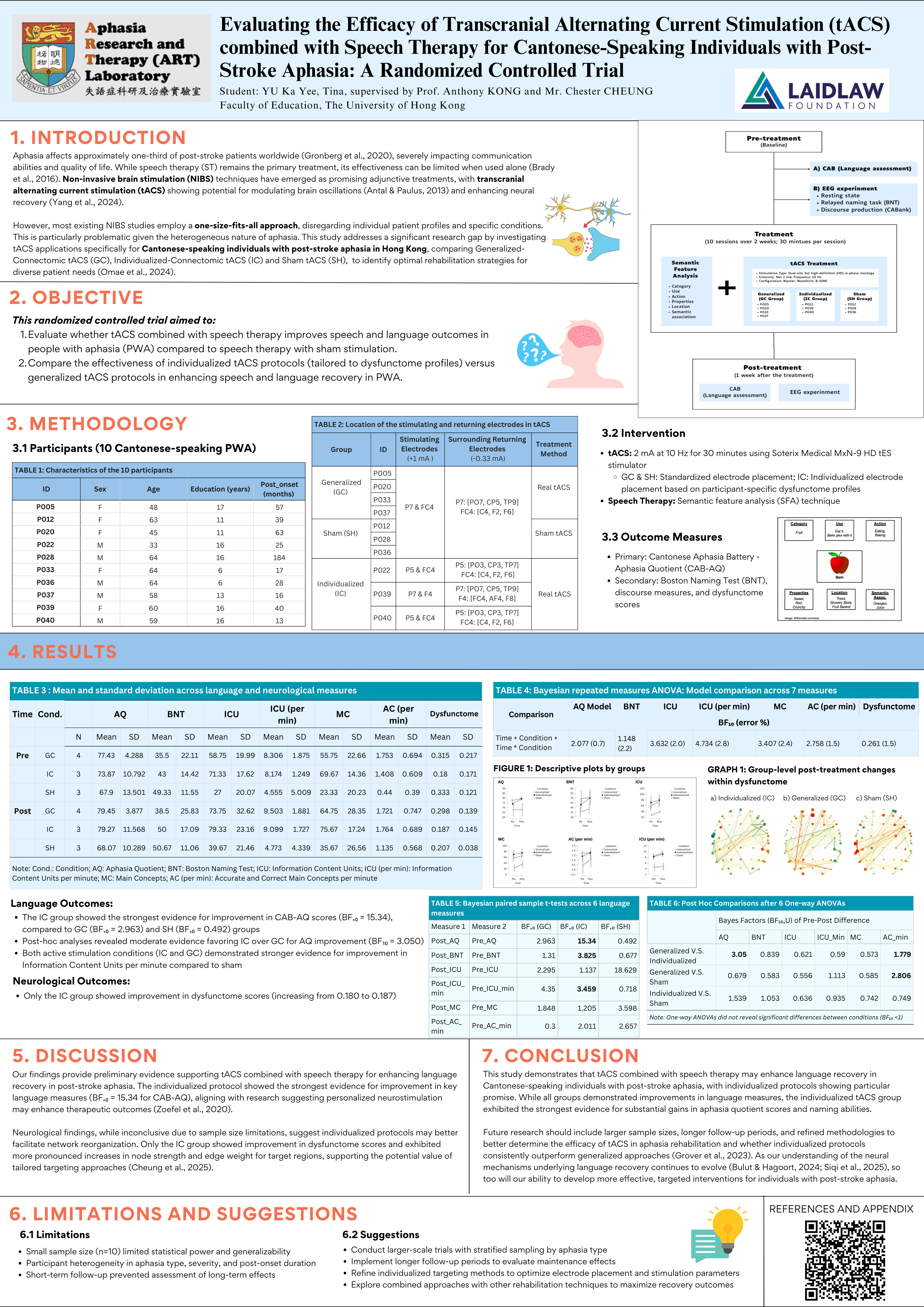 This randomized controlled trial examined how this cutting-edge neurostimulation technique, when paired with targeted speech therapy, impacts language recovery in Cantonese-speaking individuals. Stop by to explore our findings on individualized versus generalized stimulation protocols and what they mean for the future of aphasia rehabilitation.