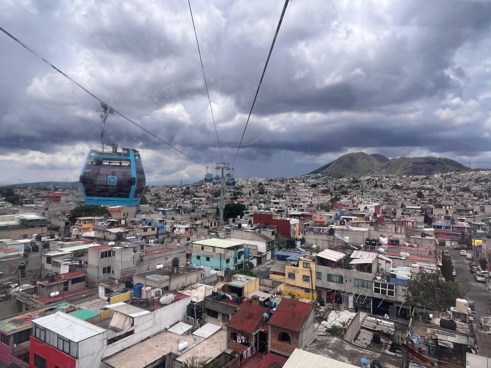 To allow us to see the disparities between different areas of Mexico City, as well as the actions in place to improve the lives and communities in some of the most deprived areas of the city, we took a trip to two UTOPIAs. These are areas funded by local municipalities to provide spaces for local people for leisure, education, and cultural experiences. UTOPIA Barco focused on climate action, including an interactive virtual aquarium and an exhibit on the devastation of climate change on Mexico. UTOPIA Libertad provided a large, safe outdoor space with several educational workshops for families to learn both academic and life skills. It was also built using ecological materials, with sustainability as a core theme. Within the Iztapalapa district, cable cars have been implimented as a new public transport scheme to increase the dignity of those who rely on public services, as well as a more efficient method to travel across the area. The views provided across the whole city were incredible, with many roofs being covered in murals of different people and cultural iconography.