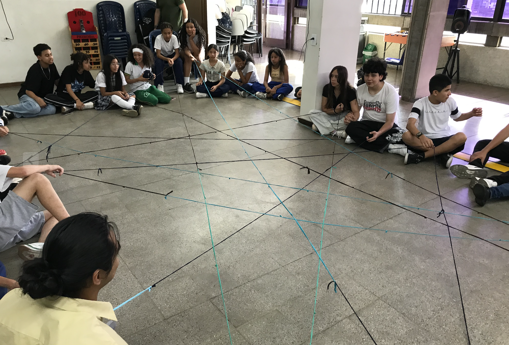 I first introduced the yarn activity. I had planned for this to take 10 minutes for a group of 30 kids, but it ended up taking longer than expected—about an hour. Some of the kids had a hard time expressing themselves. A few didn’t know what to say, and two of them claimed they had nothing important to share. Trauma affects these kids daily, some more intensely than others.