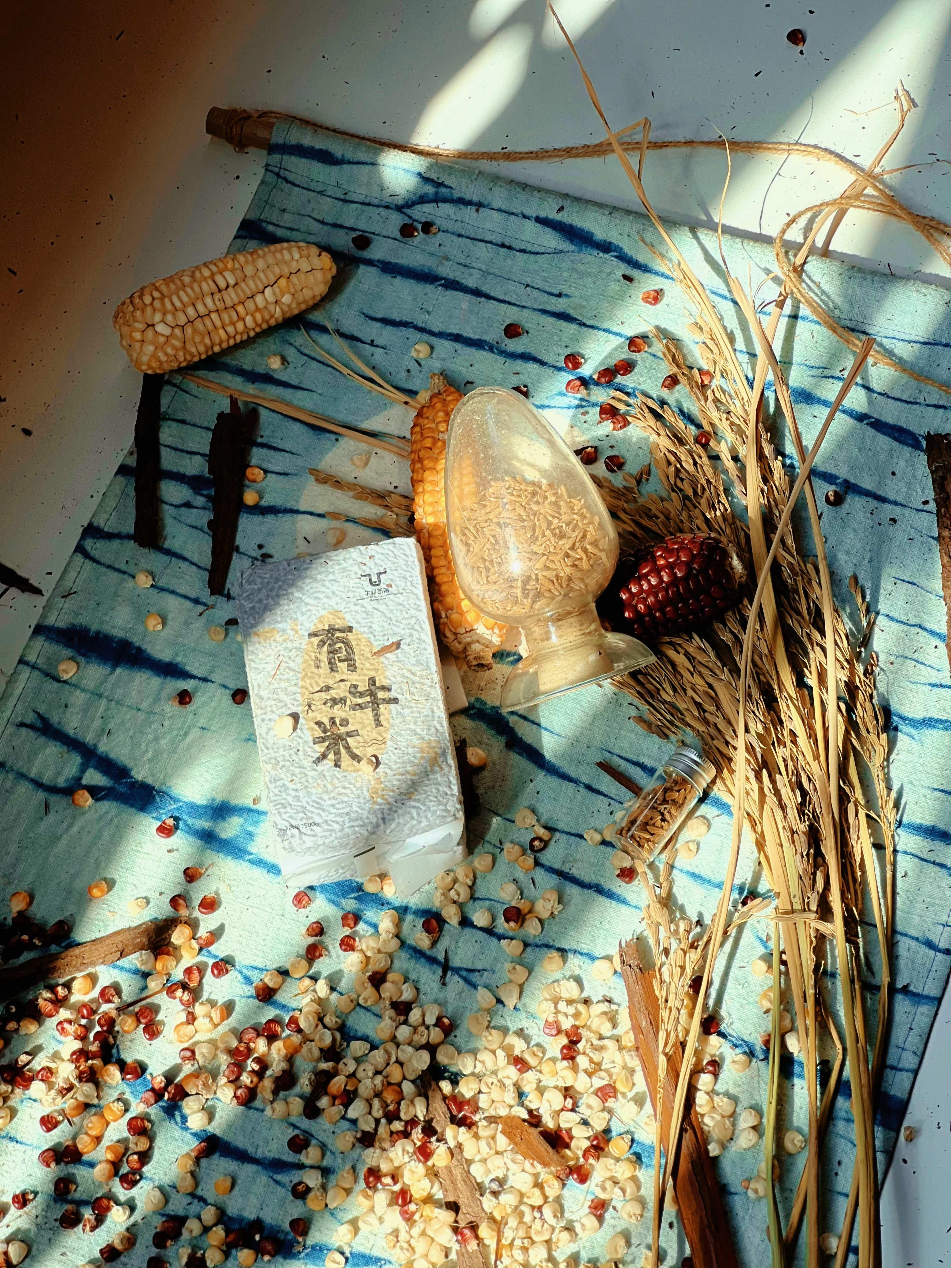 I began collecting small but meaningful elements from the village - hand-painted artworks that families hung on their front doors for good fortune; clusters of corn saved to feed cattle; bundles of wheat and seeds carefully preserved for planting. These were not just objects, they were fragments of the village’s identity.