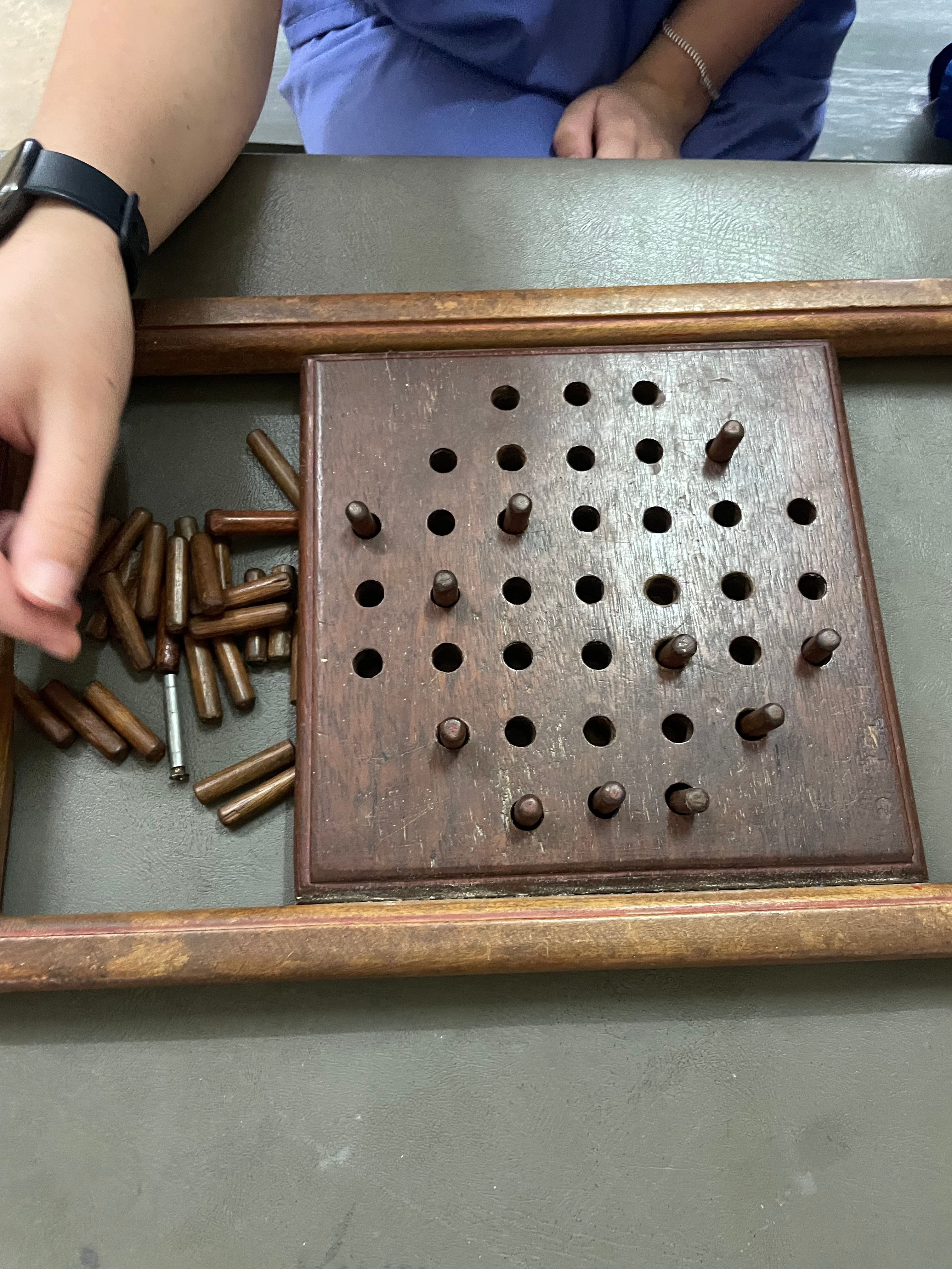To update from last week we actually got to do stuff! (Woo), after all of that palava. Our work mainly consisted of assisting occupational therapy sessions and working across 6 male and female wards. Occupational therapy is where individuals take part in interventions to improve their daily living this can be anger management, motor skills training and cognitive interventions. Occupational therapy sessions were so interesting the way games are designed to aid motor skills and cognition, we played pick up sticks and a strange hole game (no clue what the name was). The games were difficult to play but as we played the more we progressed and improved alongside the clients, I got very competitive I can’t lie.