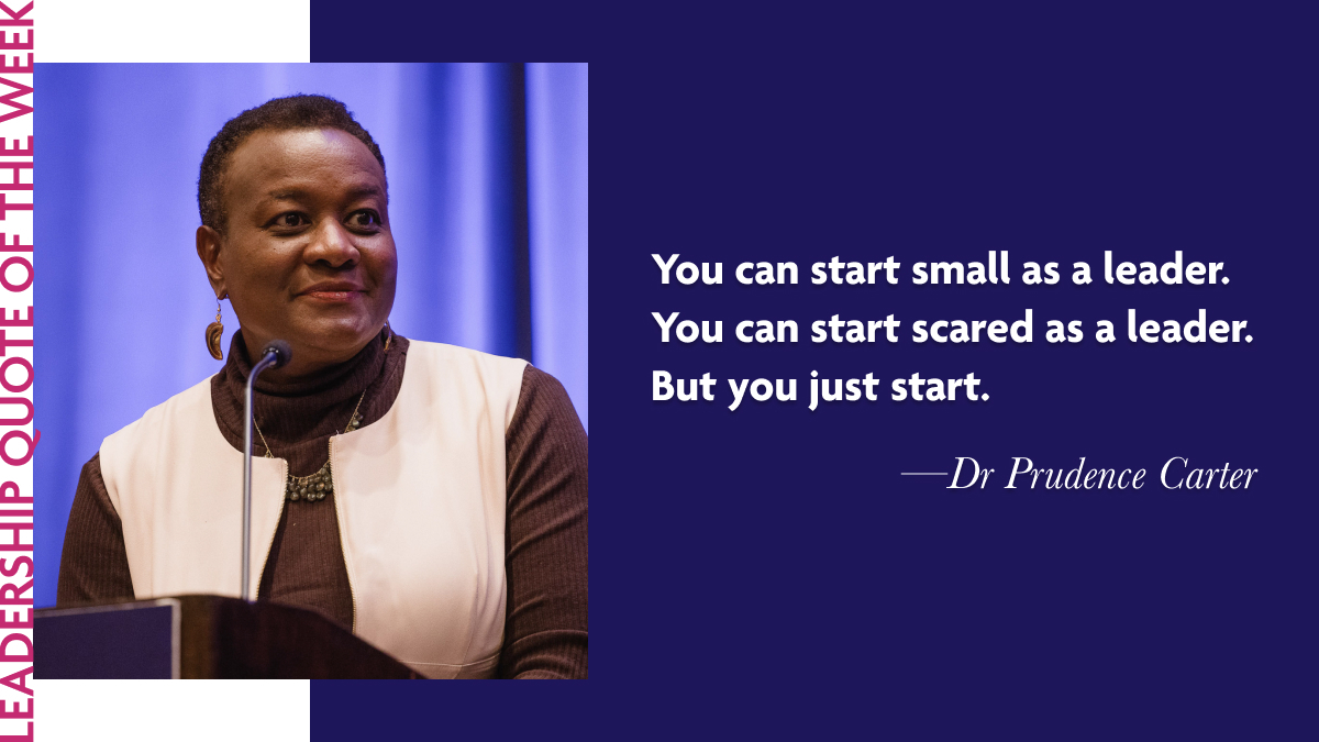 Dr. Prudence Carter: "If you don't see yourself as a leader, or if you feel in any way hesitant, sceptical, or insecure about what it means to lead, I'm asking you not to wait until you feel completely ready. I don't feel completely ready either. It's about holding on to the courage, the ideals, and the sense of self that you want to bring to the common good. You can start small as a leader. You can start scared as a leader. But you just start."